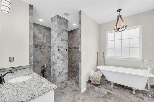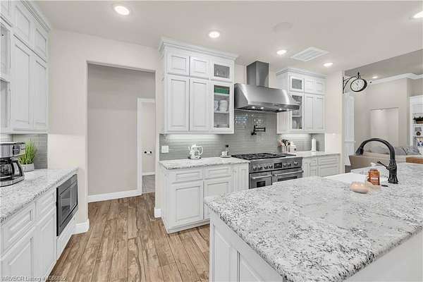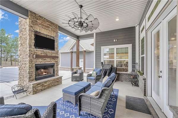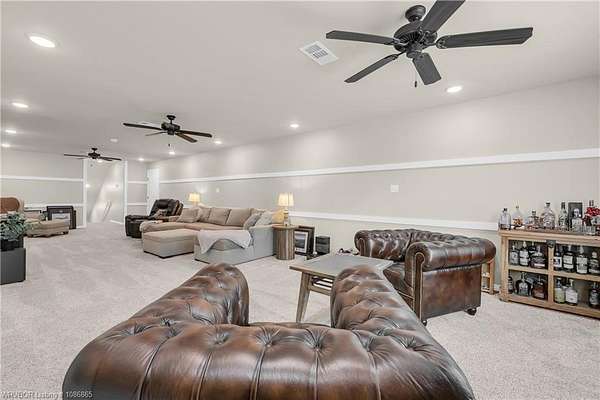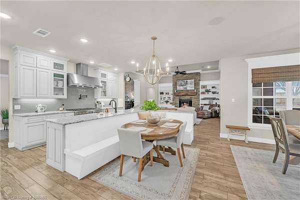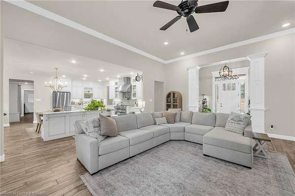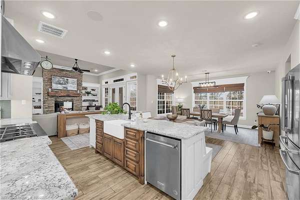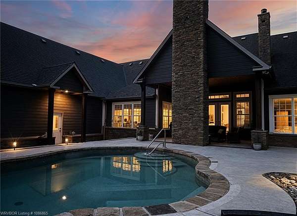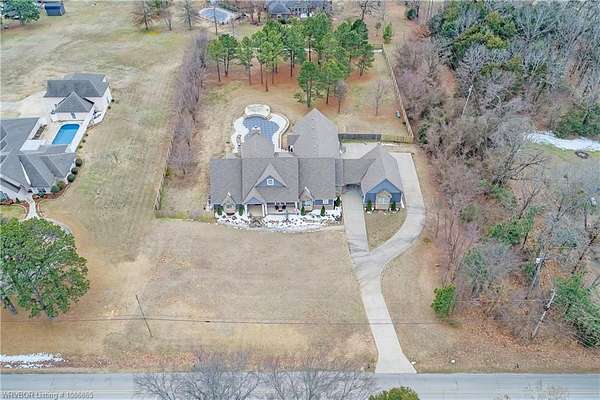 Gorgeous and completely move-in ready, this dream home sits on just over two acres and offers exceptional indoor and outdoor living. Step outside to your private oasis featuring a stunning outdoor living area with a stacked stone fireplace, a saltwater pool with a waterfall feature, and built-in inner pool seating-perfect for relaxing or entertaining year-round. The property includes five oversized garage spaces, two spaces have tall ceilings ideal for additional storage, hobbies, or recreational vehicles. Designed for comfort and convenience, the home offers true main-level living with all four bedrooms and bathrooms located on the main floor. Upstairs, you'll find an expansive bonus room complete with a cozy reading nook, providing flexible space for a home office, media room, or play area. Inside, the open-concept living area showcases high-end finishes throughout. The dream kitchen is a standout, featuring granite countertops, a tiled backsplash, an eat-in kitchen area, and a five-burner gas cooktop with griddle and pot filler-perfect for both everyday cooking and entertaining. Just off the kitchen is a very large pantry and prep area with granite countertops and a full wall of cabinetry, offering exceptional storage and workspace. The living room is warm and inviting, highlighted by a stacked stone fireplace with built-in shelving on either side, creating a perfect focal point for gatherings or quiet evenings at home. This exceptional property blends luxury, comfort, and functionality, making it an ideal place to call home.