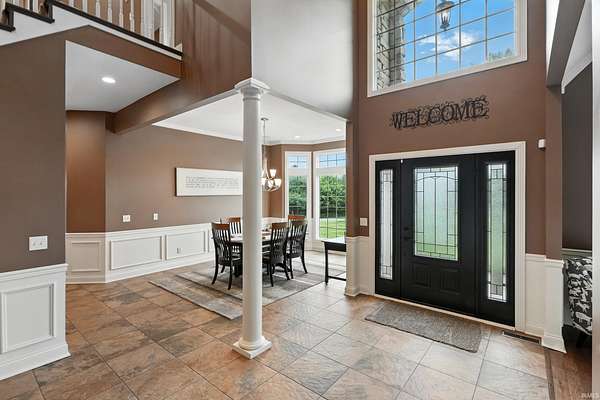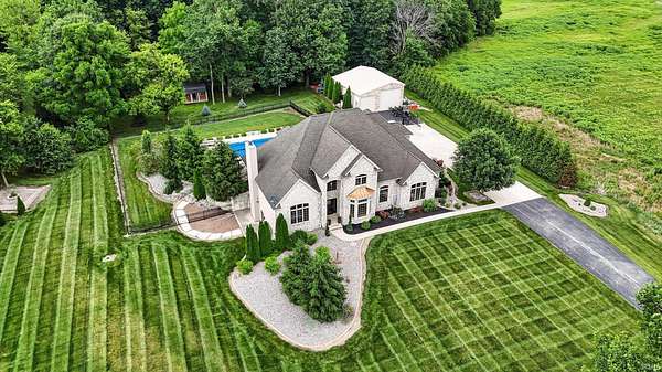 Start Showing Date: 4/6/2026 Welcome to this exceptional two-story home nestled on 5 acres of private, partially wooded land with an inground pool and outbuilding. The property offers the ultimate privacy, with a long, gated driveway leading to this beautifully designed residence. The grand two-story foyer sets the tone as you enter, showcasing elegant crown molding throughout. Step into the formal dining room with wainscoting and large windows that flood the home with natural light, highlighting the open and airy floor plan. The gourmet kitchen is a true chef's dream, featuring granite countertops, a built-in double oven, and stainless steel appliances. The main floor is home to a luxurious owner's suite, complete with a spacious walk-in closet, dual vanities, a standalone soaking tub, and a separate tile shower, providing a perfect retreat. The main floor also offers a large laundry room, mudroom with built-in lockers, and convenient access to the rest of the home. Upstairs, you'll find four additional bedrooms and two full bathrooms, offering plenty of space for family and guests. The fully finished basement is a standout feature, offering a full kitchen, a built-in safe, 6th bedroom and another laundry room, making it perfect for entertaining or multi-generational living. The exterior of the home is just as impressive, with a large, beautiful patio area complete with a wooden pergola, perfect for enjoying the outdoors. The inground pool is an oasis of relaxation, and the outbuilding provides additional storage or workspace. This is a rare find, offering both luxurious living and privacy in a peaceful, picturesque setting. Schedule your tour today!