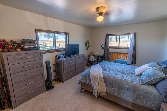 The property features a main ranch house alongside a cozy guest house, providing ample space for family and visitors. Additionally, three well-maintained outbuildings offer versatile options for work, equipment storage, and livestock care, making it an ideal setup for anyone looking to escape town.