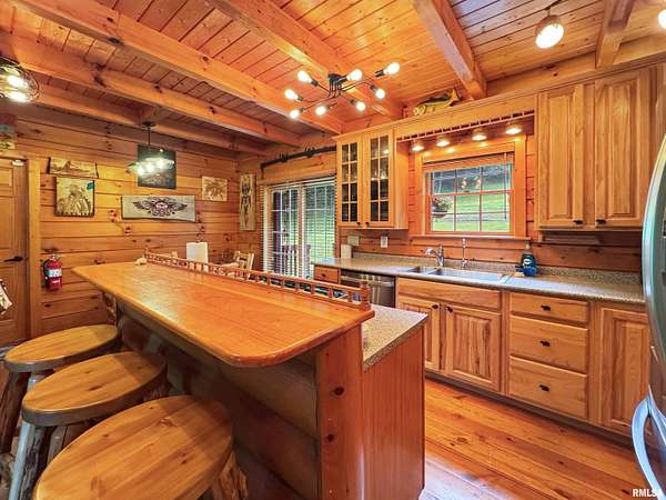Your Ultimate Turnkey Log Cabin Retreat on 15 Acres with an outbuilding. Escape to a private sanctuary at 17327 U.S. 24, Glasford, IL, where rustic charm and modern luxury converge in this stunning, fully-furnished log cabin and outbuilding. Nestled on 15 sprawling acres of picturesque pasture and timber, this meticulously renovated property is a true turnkey retreat, ready for you to move in and immediately begin enjoying the country lifestyle. Built in 1999, this one-and-a-half-story log home offers 2100 square feet of beautifully finished living space. The main level welcomes you with vaulted ceilings, skylights, and a cozy living room featuring a beautiful wood-burning fireplace. The open-concept design flows into an informal dining area and a well-appointed kitchen with modern appliances and solid surface counters. A main-floor bedroom, full bathroom and main floor laundry provide convenient single-level living options. The upper level features a loft space, the primary suite, and deck to enjoy the amazing views and watch the wildlife. The fully finished basement significantly expands the living area with a large family room and a third bedroom, along with another full bathroom. The equally impressive outbuilding is a hobbyist's paradise, equipped with its own HVAC, heated floors, and half bath. This property is more than just a home; it's a fully-equipped lifestyle. Recent updates include HVAC system with an additional mini-split, updated showers, and