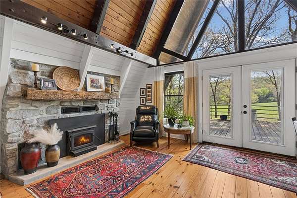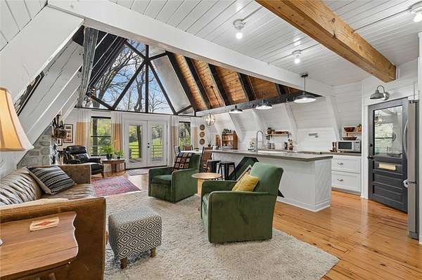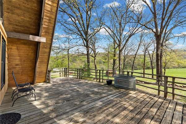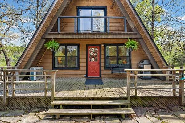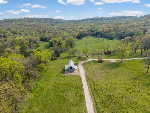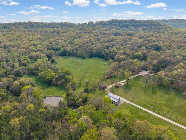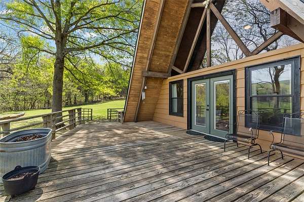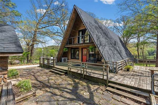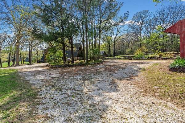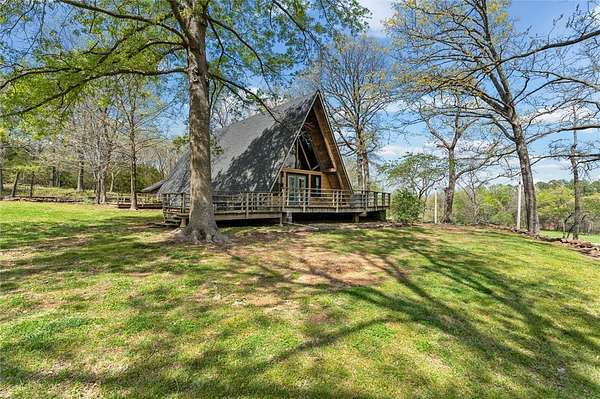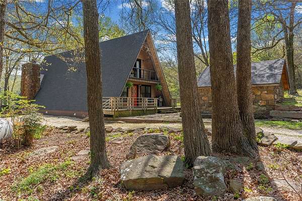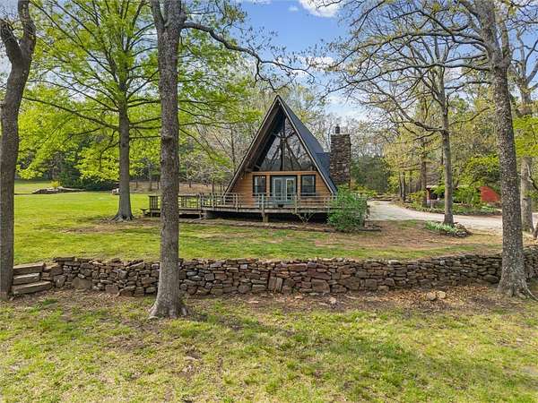 Whether you are looking for a permanent home or a weekend retreat, this property has a lot to offer. Surrounded on three sides by rolling hills and natural forest, the peaceful valley setting is beautiful in all seasons, but stunning in the fall. Minutes from Historic Canehill, the remodeled A-frame home sits just down a well-maintained gravel road with easy access from Fayetteville, Ft. Smith, or Siloam Springs. Nice mixture of woods and open fields along with a pond and wet weather creek. ATV trails run throughout the property. The end-of-the-road location offers privacy, seclusion, and peace. The charming cabin has been completely remodeled but retains the 1970s charm with its vaulted ceilings, wall of windows, stone fireplace, and original pine floors. Don't miss the recent (2025) barn conversion with its additional bath, full kitchen, and extra storage. There is a water well that is plumbed to supply the A-frame, guesthouse, and gardens. The main house is also plumbed for City of Lincoln water.