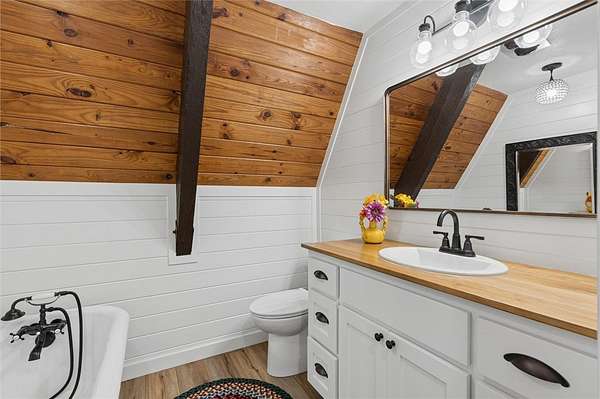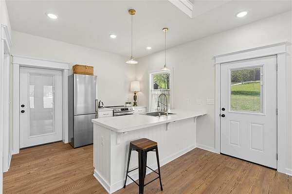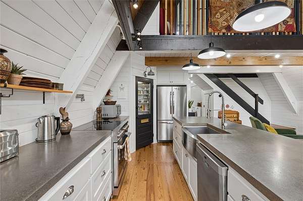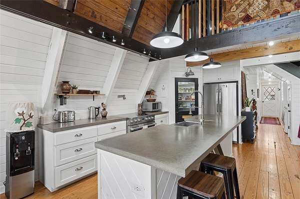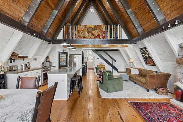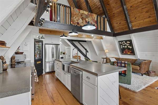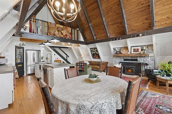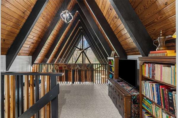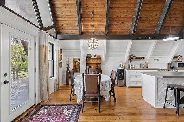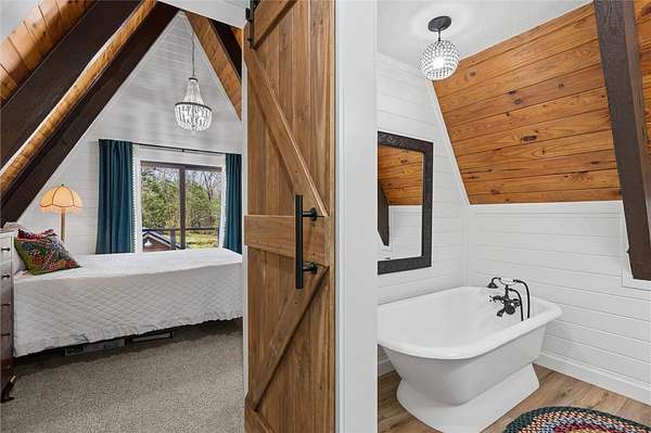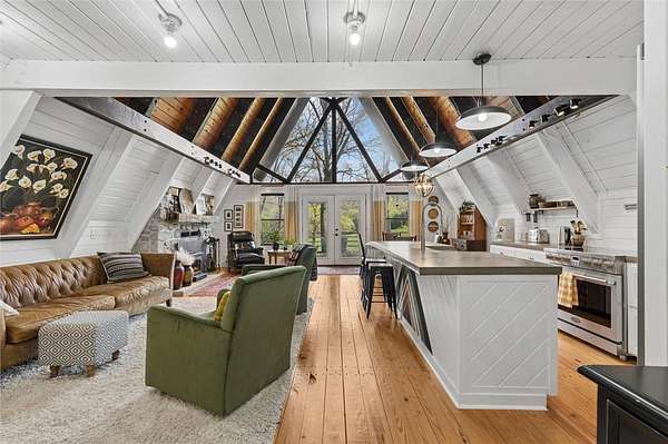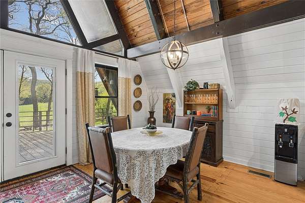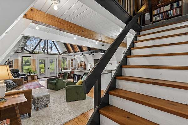 Whether you are looking for a permanent home or a weekend retreat, this property has a lot to offer. Surrounded on three sides by rolling hills and natural forest, the peaceful valley setting is beautiful in all seasons, but stunning in the fall. Minutes from Historic Canehill, the remodeled A-frame home sits just down a well-maintained gravel road with easy access from Fayetteville, Ft. Smith, or Siloam Springs. Nice mixture of woods and open fields along with a pond and wet weather creek. ATV trails run throughout the property. The end-of-the-road location offers privacy, seclusion, and peace. The charming cabin has been completely remodeled but retains the 1970s charm with its vaulted ceilings, wall of windows, stone fireplace, and original pine floors. Don't miss the recent (2025) barn conversion with its additional bath, full kitchen, and extra storage. There is a water well that is plumbed to supply the A-frame, guesthouse, and gardens. The main house is also plumbed for City of Lincoln water.