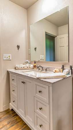 - Double Vanity, Laminate Counters, Linen Closet, Pantry, Shower/Tub Combo