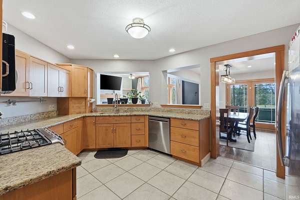 Country living at its finest! Situated on 2.75 acres in the award-winning Leo school district, this 2,201 sq ft home with 3 BR and 2 full baths, offers the convenience of slab construction and city sewer. The scenic property features a stocked pond with koi, bass, and bluegill, along with a variety of fruit-bearing plants including strawberries, black raspberries, peach, and apple trees—perfect for enjoying your own private outdoor retreat. Designed for entertaining and relaxation, the outdoor space includes a screened-in porch, built-in smoker and grill, dock, and paddleboat—all included. Recent updates include a new roof (2025), well pump (2025), dishwasher, whole-house humidifier, and gutters on the outbuilding. The electrical system features dual 100-amp service with generator hookup for added peace of mind. Ample storage is available with a 26x24 attached garage and a 32x24 detached garage. This is a rare opportunity to own a private, feature-rich property offering space, comfort, and a true connection to nature. All kitchen appliance's to remain plus washer and dryer