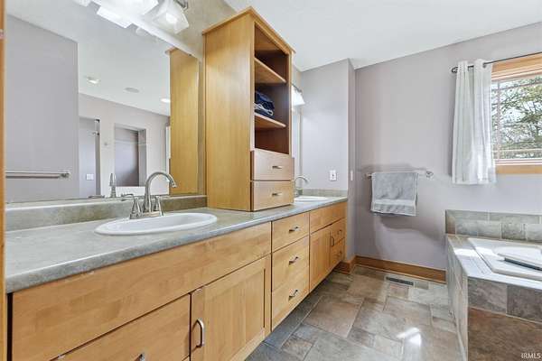 - Dishwasher, Disposal, Dryer Hook Up Gas, Garden Tub, Refrigerator, Split BR Floor Plan, Water Softener-Owned