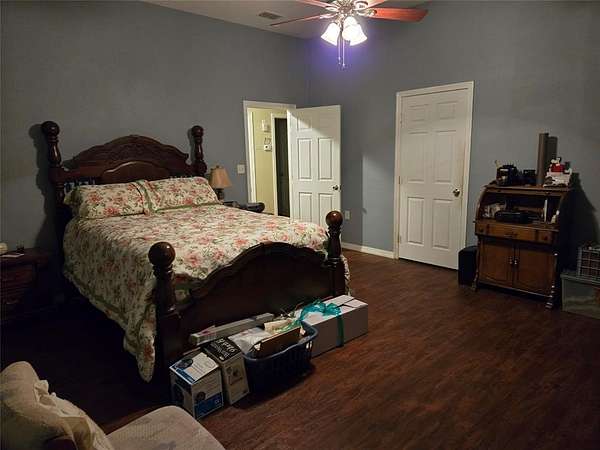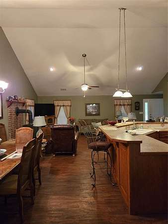 Peaceful property ready for new owners! Over 5 acres with 3 bedroom and 2 bath home. Fruit trees, previous garden area, chicken coop and huge shop barn. It even has a storm shelter near the home for your safety, if ever needed. This home has no shortage of storage space either. Closets have auto lights and shelving. Open floorplan is great for entertaining. Covered back patio will allow you to enjoy the evening air. The entire property is fenced, and a smaller fenced backyard at the house. Bring animals and green thumb, the estate is ready to sell! They have already had an appraisal done and listed UNDER appraised value. Bring offers and move to the quiet country life.