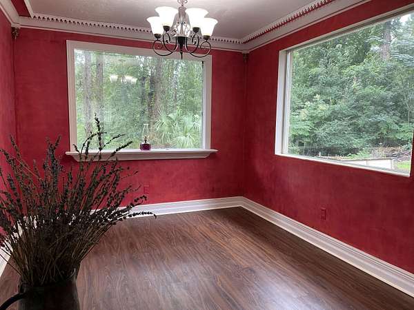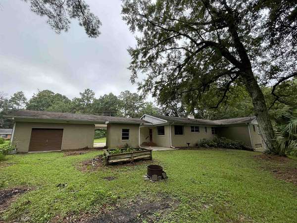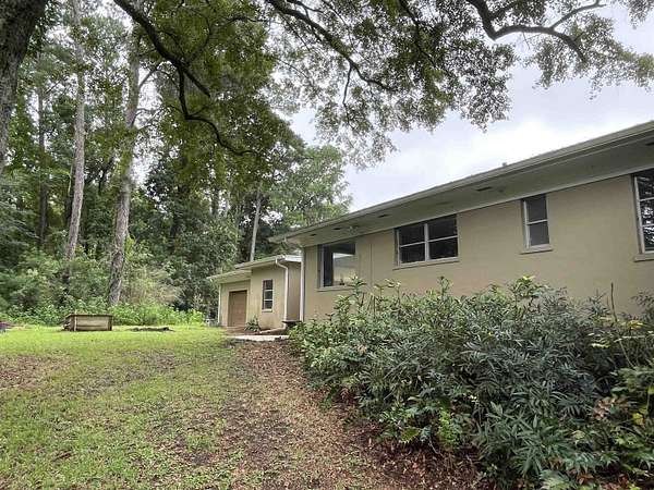 Mid-Century 3 BR/3 Full Bathrooms situated on 4.117 in-city acres, offers original hardwood floors, gas fireplace, big picture windows, sunken family room and classic charm. Entertain in the large living room or snuggle up in the cozy family room with surround sound. The dining room is lined by craftsman molding and a perfect view of the duck pond and back yard where you will find several mature fig, pear and citrus trees. The large bedrooms lend privacy and ample space to stretch out on any sized bed. Unique features are the finished basement once used for a dental laboratory which can be perfect for a home office, gym or extra living area for potential rental income and the creeks on either side of the property. A large patio is located on the west side of the house and is perfect for outdoor BBQs. A carport, storage room and huge workshop/garage round out the home. Priced below recent appraised value of $375k