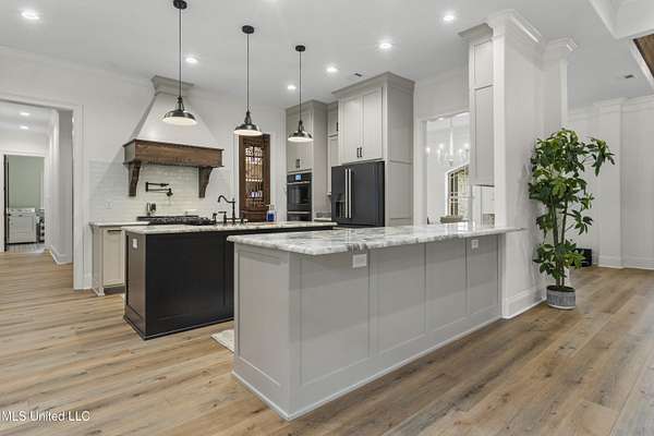 Welcome to 17431 Doc Lizana Road, where timeless craftsmanship meets modern convenience. At the end of a private, winding limestone drive you'll find this absolutely gorgeous 5-bedroom, 5.bathroom custom-built estate that spans 4,500 square feet on 10 serene acres, showcasing extraordinary cypress finishes and thoughtful design details throughout. This private luxury home has all the features you're looking for! From the moment you arrive, the cypress tongue & groove porch ceilings, solid cypress posts, and stained cypress trim set the tone for the quality and elegance within. Inside, you'll find an open layout with LVP flooring throughout, bullnosed corners, and custom tilework in every bathroom. The gourmet kitchen is a chef's dream, featuring GE Cafe appliances, a custom vent hood, an additional ice maker, and seamless flow to the outdoor entertainment area with fans-perfect for hosting family and friends. A striking barrel-vaulted cypress ceiling and smart wiring upgrades, including CAT 6 wiring and Wi-Fi repeaters, elevate the living experience. Gorgeous light enters the home through numerous large windows. The primary suite is a true retreat, with a private sitting area, an oversized 6'x12' walk-in shower, and a massive master closet. One upstairs bedroom with its own bath and closet offers a private suite above the garage, ideal for guests or multi-generational living. All of the bedrooms boast their own en suite. Practical luxury abounds with a 500-gallon buried propane tank, generator-ready switch, two tankless water heaters, oversized 3-car garage, and well house stubbed with 200 AMP service for future buildout. The home is also stubbed for a heated and cooled pool. Experience the perfect blend of craftsmanship, space, and modern amenities in this one-of-a-kind Gulfport property.