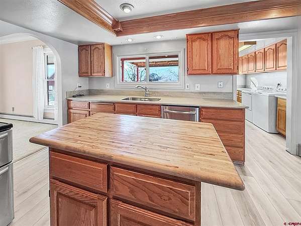 Custer McLeod, Needlerock Mountain Realty and Land, LLC, C: 970-209-0696, custer.realty@gmail.com, www.crenmls.com: Step back in time with this historic two-story farmhouse, built in the early 1900s and thoughtfully updated while preserving its classic charm. Offering approximately 2,218+/- sq. ft of living space, this home features 3 bedrooms and 2 bathrooms, with recent updates including soapstone countertops, new laminate and carpet flooring throughout downstairs, and updated appliances.The spacious kitchen is designed for functionality and gathering, featuring an island with built-in cutting board, oak cabinetry with ample storage, and a large walk-in pantry. Just off the kitchen are two living areas--a comfortable living room and a separate family room--perfect for entertaining or relaxing. A large laundry/mudroom adds everyday convenience. The home is heated by 5-zone baseboard heat and opens to a beautiful 2x4 wood wraparound deck.A second residence with its own separate address offers 2 bedrooms and 1 bathroom, providing excellent income potential, or ideal space for an office, studio, or guest home.Additional highlights include custom large wood trim around doors and windows, adding warmth and character throughout.The property is well-equipped for agricultural or hobby farm use with: o 5 outbuildings o 4 loafing sheds with storage o 3-car garage with attached workshop o Fully fenced perimeter with multiple cross-fenced pastures o Fencing includes 4-strand smooth wire, chain link, metal fencing, and game fenceWater rights include 4 shares of irrigation water, sufficient to irrigate approximately 6+/- acres.This unique property blends historic charm, modern updates, and versatile land use--perfect for those seeking space, functionality, and opportunity.
