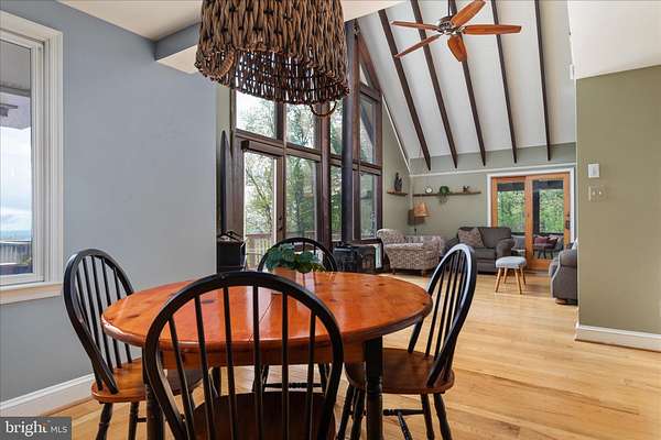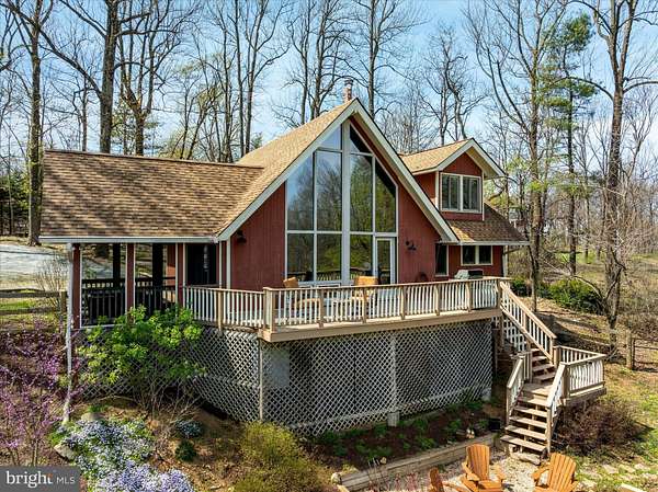 Experience the peak of Western Loudoun County living in this spectacular Blue Ridge Mountain retreat. Perched on three private acres and surrounded by protected easement land, this expanded A-frame chalet is a true sanctuary in the heart of Virginia's celebrated Wine Country. The home is perfectly positioned to capture breathtaking sunrise views over the valley, offering the peace of a mountain getaway just moments from the vibrant lifestyle of Bluemont. The interior features a massive great room with soaring beamed ceilings and a wall of floor-to-ceiling picture windows that bring the beauty of the Blue Ridge right into your living room. Modern updates shine throughout the gourmet kitchen, which features stainless steel appliances, a breakfast bar, and a built-in workspace. The main level continues with a versatile suite including an adjacent full bath and a walk-in closet, offering the perfect setup for a second primary bedroom, guest wing, or library. Upstairs, the primary loft suite serves as a private escape with double built-ins, a sitting room or office, and a spa-like bath with a deep soaking tub. Outside, the property is designed for the outdoor enthusiast, featuring a large screened-in porch, a wraparound deck, a fenced yard, and a dedicated greenhouse with power. Additional infrastructure includes a newer roof, updated HVAC, fresh exterior paint, an encapsulated crawlspace, and dual water heaters. Adventure is at your doorstep with the Appalachian Trail and the iconic Raven Rocks overlook just steps away. You are perfectly positioned for summer days on the Shenandoah River and weekends exploring the best of Loudoun agritourism. The property is minutes from award-winning destinations like Bear Chase Brewing, Bluemont Vineyard, Dirt Farm Brewing, and Great Country Farms. Whether you are looking for a full-time residence or a weekend getaway in one of Virginia's most picturesque corridors, this A-frame chalet offers an unmatched blend of rustic charm and modern luxury.