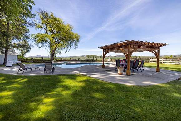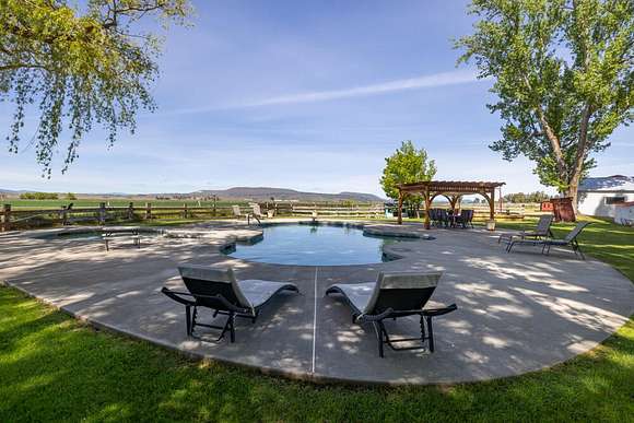 The WC Ranch is a spectacular 175-acre Country Estate located in Klamath Falls OR. The ranch has been owned by the same family for over 50 years & pride of ownership is clearly evident. This property features a 4 BR/3.5 Bath, 2 story residence, 2 BR/1 Bath guest house/ADU, custom 1 BR Treehouse built by Pete Nelson, (Treehouse Masters), RV pad, workshop w/ 2 bays, & hay barn. Work, stay, play. Something for everyone & every age. Expansive lawn, shade trees & meticulous landscaping make this the perfect entertaining location for your family & friends. More features include, heated, in-ground pool with Pergola, Pickleball court, BBQ, plus a playground & swing & a seasonal pond for the waterfowl enthusiast. Prime irrigated farm ground. ~142 acres in KID & ~ 23 acres in KBID. Lease in place for current crops which are winter wheat and garlic on appx 85 acres. Ideal location for country living but just a short drive to schools, shopping and medical.
