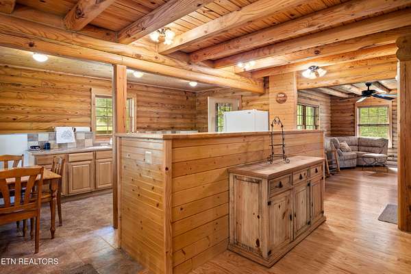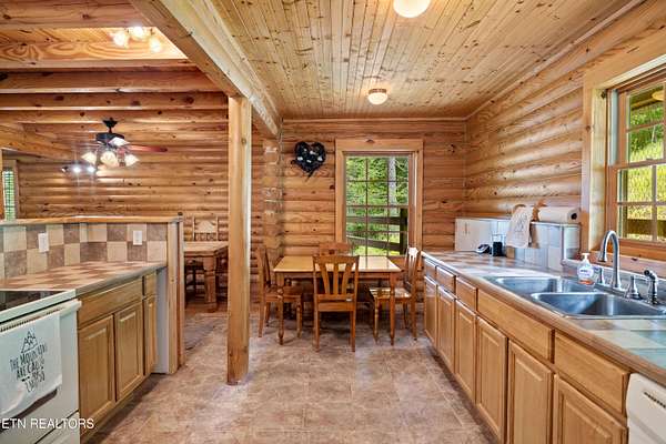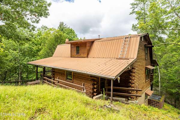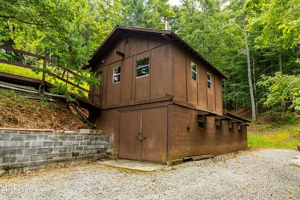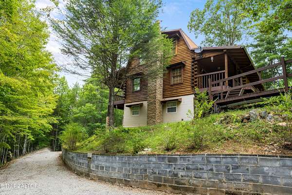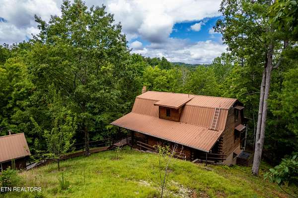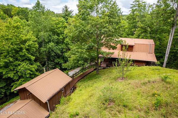 Hidden away in the forest, 3 level log home on 15.59 surveyed acres in the mountains east of the special town of Tellico Plains, where you can shop for one of a kind items, drive along Tellico River to Bald River Falls, ride the famous Cherohala Skyway, find several great places to eat, see Topiary along the road, right where it's created. Close to lakes, rivers, museums, discover the history of these mountain towns and their people. May be eligible for reduced Green Belt taxes, under Forestation. Appliances included, plus some furniture. There's a separate workshop/garage, with a studio apartment above, If you truly want to get away from city life, this is for you. Mostly large tracts in the area, and while it's wooded, there's a small pasture for a horse, cow, goat, chickens - no restrictions and no homeowner association. Home built by sellers over several years (using studio to live in while building). Currently no internet, but there are choices available.