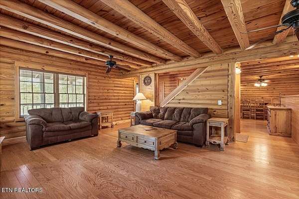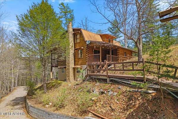 Private 3-level, 3024sq ft log home on 15.59 surveyed acres in the mountains of Tellico Plains. This property offers the perfect blend of seclusion and convenience, with easy access to local shops, dining, and outdoor attractions including the Tellico River, Bald River Falls, and the scenic Cherohala Skyway. The home sits on mostly wooded acreage with a small pasture area suitable for a small farm offering flexibility for personal use, homesteading, or potential short-term rental income. No restrictions and no HOA. Surrounding properties consist primarily of large tracts, enhancing the private setting. Additional features include a detached workshop/garage with a studio apartment above, ideal for guests, rental potential, or workspace. The home was thoughtfully built by the sellers over several years, utilizing the studio as living quarters during construction. Appliances convey, along with select furnishings. Property may qualify for reduced taxes under Greenbelt/Forestation. Whether you're looking for a private mountain retreat, full-time residence, or an Airbnb-style investment opportunity, this property offers a rare chance to enjoy the natural beauty and history of East Tennessee. Call Today for your private showing.