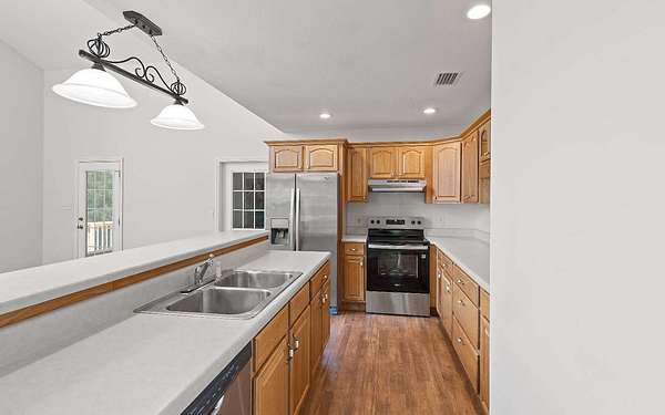 Est $3,252/moHigh and dry home on the Suwannee River. This charming home features vaulted ceilings, large windows for natural light, bonus room, reading nook with view and beautiful oak cabinets. Recent updates include a newer roof, A/C, and stainless steel appliances, while the outdoor space offers fruit trees, a hot tub, expansive decks, and a screened-in porch. The property also includes fully fenced and gated yard, RV storage with full hookups (including power and clean-out), large storage building and kayak/canoe storage. This home is not in a flood zone.
