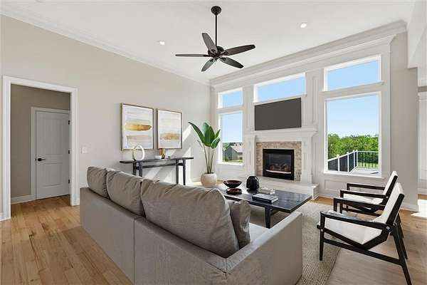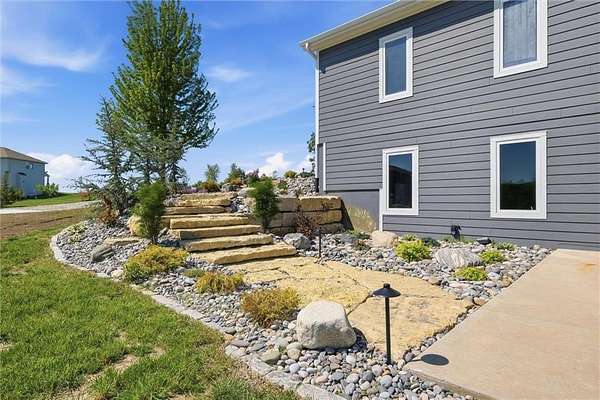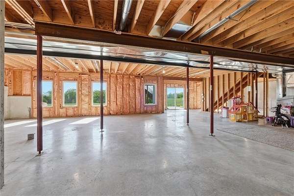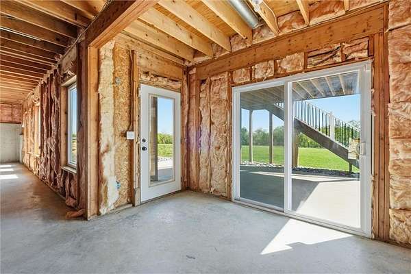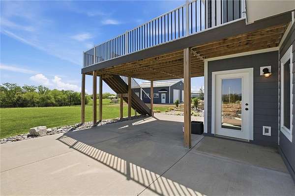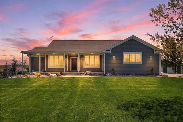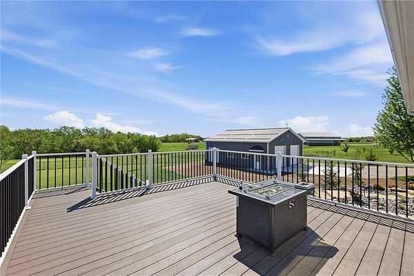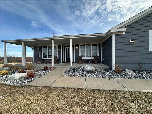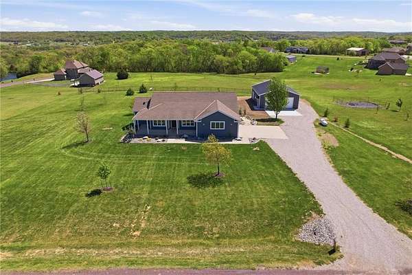 STUNNING ACREAGE RETREAT IN ROCKING C ESTATES | 2.5 ACRES | OUTBUILDING + WALKOUT BASEMENT | NO HOA Positioned on a premier corner 2.5-acre homesite atop a gentle rise with sweeping countryside views in sought-after Rocking C Estates of Tonganoxie. This meticulously maintained property has perfect views from every angle & offers privacy, functionality & some of the BEST country living-OFF PAVED ROADS with NO HOA! From the moment you arrive, the INCREDIBLE landscaping creates a true resort-like setting with a dreamy arrival with wraparound front porch inviting you to slow down and enjoy your own private retreat. A TRUE ranch floorplan offers 3 spacious bedrooms split for privacy PLUS a beautiful office with French doors and 2 full baths delivering 2,400 SF of main-level living! This home has been completely REFRESHED with paint, carpet, stunning natural hardwood flooring complemented by soaring ceilings and new oversized kitchen windows that flood the interior with natural light. You'll LOVE the thoughtfully designed updated kitchen featuring gorgeous countertops, a large island, Designer selected custom inset white oak cabinetry & gorgeous hardware w/ stunning luxury appliances! The full unfinished walkout basement offers HIGH ceilings and endless potential for additional living space, a home gym, or entertainment area. ##### OUTBUILDING DREAMS ###### A show-stopping NEW (June 2025) 36x40 outbuilding is fully insulated and impressively built with a 5-inch concrete floor reinforced with #4 rebar and high-voltage service-ideal for hobbyists, entertaining, a home business, in-law suite, multi-generational living, or future expansion. This is more than a home-it's a rare BETTER THAN NEW acreage lifestyle opportunity offering space, flexibility, and hard-to-find detail!