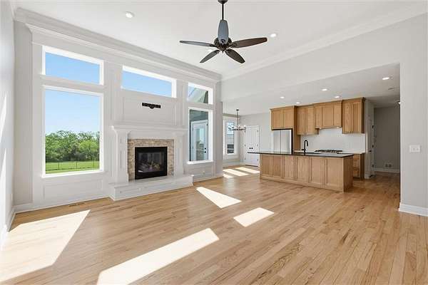 From downtown Tonganoxie: Head west on State Ave / US-24 toward the western edge of town. Turn left (south) onto Tonganoxie Road. Continue south, then turn right (west) onto 254th Street. Follow 254th Street into Rocking C Estates-the property will be on the corner, positioned on an elevated homesite.