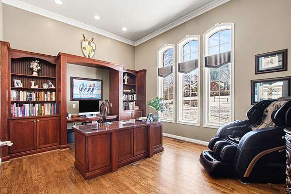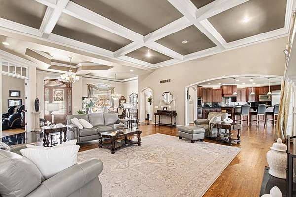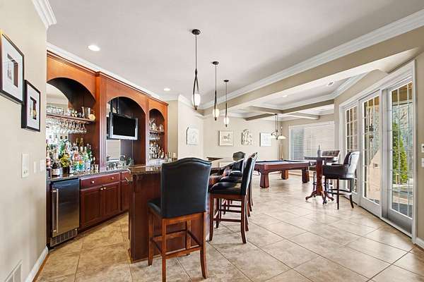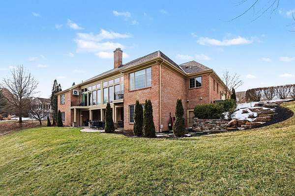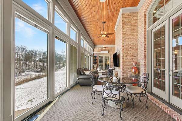 An Entertainer's Dream designed for those who appreciate exceptional craftsmanship and unforgettable gatherings. This meticulously appointed, custom-built Jobe ranch is gracefully positioned on over two private acres, offering more than 7,500 finished square feet of refined living. A grand granite entry introduces coffered ceilings, rich hardwood flooring, intricate moldings, and handsome built-ins that define the home's timeless elegance. The gourmet kitchen, complete with Butler's pantry, was designed to impress-equally suited for intimate dinners or grand-scale celebrations. The walk-out lower level rivals private clubs, featuring a secluded speakeasy with wine alcove, an expansive pub-style bar, two bedrooms, two full baths, and a substantial workshop with secondary garage access. Enjoy four-season entertaining in the enclosed veranda or unwind beside one of three fireplaces. Evenings are best spent on the covered paver patio overlooking a serene wooded backdrop enhanced by professional outdoor lighting. Full brick construction, a 3-car garage, and a premier location near Downtown Cincinnati and the airport complete this extraordinary estate.