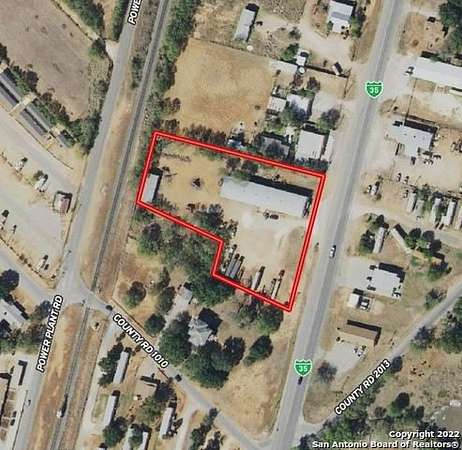 For sale is a building in Pearsall that has been in the agricultural business for almost the last 40 years. Gulley Ford Tractor was opened in 1986 that sold tractors and implements as well as providing the maintenance and repairs in the heavily farmed area around Pearsall TX. The property is located along the busy highway of I-35 Business Loop and also known as Hwy 81, and has approx. 330' of frontage. The front door of the building opens up in to a lobby with two offices and two restrooms. There is warehouse type storage and a large mechanic shop with a wash bay in the rear of the building. There is an electric chain hoist that will convey with the sale. The building's concrete slab is 200' long by 50' wide and has three roll up/sliding doors. There are two fully enclosed sheds and a metal canopy that measures 30'x70'. Also, the property has a water well and septic tank. The city of Pearsall is bringing in city water and sewer utilities that will run across the front of the property along Hwy 81. There is three-phase electric power at the poles at the front of the building, and it would be a simple process to get it to the property.