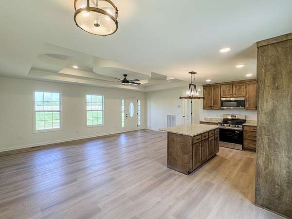 Est $1,852/moNew home on 2 acres in the country but not far from town! Additional 2 acres can be bought for $65,000! 3 bdr 2 bath with a 2 car attached garage! Coffered ceilings, Luxury Vinyl Plank throughout the home, Covered porches, Custom cabinets and granite counters, Stainless appliances, Spacious rooms sizes and open floor plan, Spray foam insulation, Board and batten vinyl siding, Beautiful home ready to move into!!