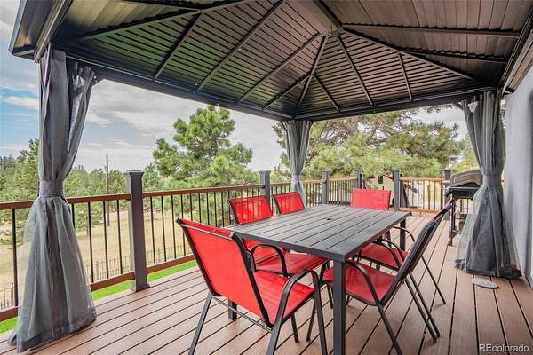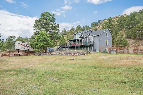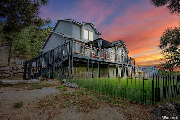 Come check out rural El Paso County! Welcome to peace & quiet on 5 ACRES just minutes from the town of Peyton and Hwy 24! A rare find; this picturesque homesite has everything you've been dreaming of! Beautiful, updated home and multiple outbuildings including a HUGE workshop backing to HOMESTEAD PARK. All paved roads leading into the paved driveway and RV parking. Set amongst the whispering pines with ultimate privacy, this gorgeous home is clean & ready for its new owners. Pride of ownership and lovingly cared for; step inside to all new luxury vinyl flooring, new carpet, new paint, new furnace, updated kitchen, new windows and so much more. The main floor features the newly renovated kitchen and its perfect; lots of cupboard space, white quartz countertops, new sink and upgraded lighting. Bonus room could easily be a main floor bedroom #5 or its the perfect game room, home school classroom, gym, etc. Upstairs has 3 bedrooms including the primary suite with large bathroom with a soaking tub, step in shower and closet. Bedroom #2 also has access to a private bathroom. The basement is a finished walk out with lots of natural light; use the entire space as a bedroom with a huge walk-in closet and newly updated bathroom. You'll love the views from the front deck, completely updated. The home has a newer roof and newer stucco exterior making it low maintenance. Outbuildings you must see to believe. 30x48 Cleary Workshop is the perfect man cave, 4 in slab and 2 10x10 doors; this shop is ideal for any hobbyist. Don't worry ladies, we have something for you too; the 10x12 "she shed" with electric is adorable, the open deck is 10x4 and its ideal for starting plants or an art studio. The kids will want to claim it and the trampoline for their own. Fenced for dogs! Too much to list here but updates include upgraded electric and new septic/leach field. Great location, Homestead Park is 450 acres of hiking & equestrian trails and even a fishing pond. A real must see property!