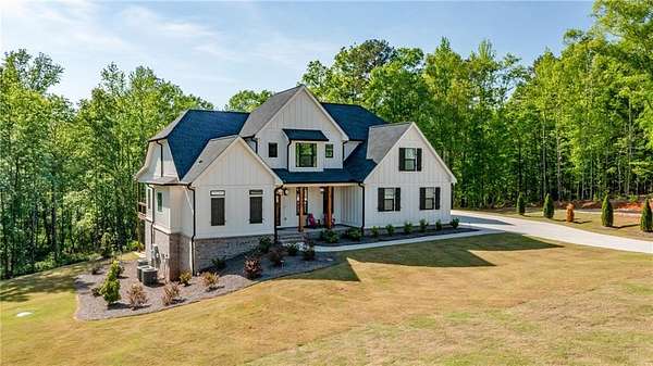 Welcome Home to this stunning modern Farmhouse, featuring the Frank Betz Kensley Downs Plan. Located in Georgia's #2 School District in the State, second only to Buford City Schools and perfectly set on nearly 9 acres of private land at the end of a cul-de-sac with NO HOA, you have the convenience of everything Athens has to offer including our beloved Georgia Bulldogs, close proximity to the highway and the privacy of living in the country! This beauty features a brick paved front porch with beautiful carriage lights and a custom solid wood front door. There's also a quaint, tucked away side entrance between the garages, perfect for unloading into the mud room and kitchen. From the front door you'll love the quiet private dining room with coffered ceiling just off the kitchen. The heart of the home features an open floor plan with 2 fireplaces, one in the great room and one in the keeping room off the kitchen, a breakfast area with an amazing wooded view, and a gorgeous custom kitchen with an oversized island, double ovens, a new refrigerator, custom vent hood and finally, a newly installed custom, walk in pantry off the mud room, a laundry room and a door leading to the unbelievable covered and uncovered back deck, perfect for a large gathering or just enjoying the sunset and grilling out. The master suite is tucked away behind the great room with french doors leading to a private deck, and a spa bath with an oversized shower, soaking tub, and a custom closet with ALL the bells and whistles! Upstairs you'll find three additional bedrooms, one full bath and one jack and jill bath with separate sinks and a shared shower, and walk in closets! The full finished basement has a guest bedroom and bath, a sitting room, a main room with another fireplace and loads of room for a pool table, unfinished storage galore and open to the back yard! There are so many wonderful areas to explore in this home, it's impossible to capture in words. You'll just have to come see for yourself. From the beautiful finishes, including all oak hardwood floors on the main, the brick on the fireplaces, the custom pantry and primary closet, security everywhere, custom finish on the garage floors that's virtually indestructable, custom lighting, whole house blinds and more, you'll fall in love with this peaceful setting and the charming feel of a beautifully built home. We can't wait for you to see this one!