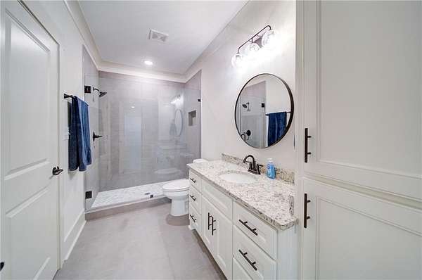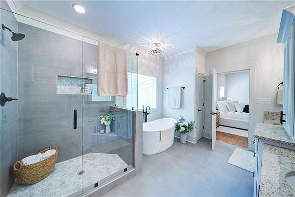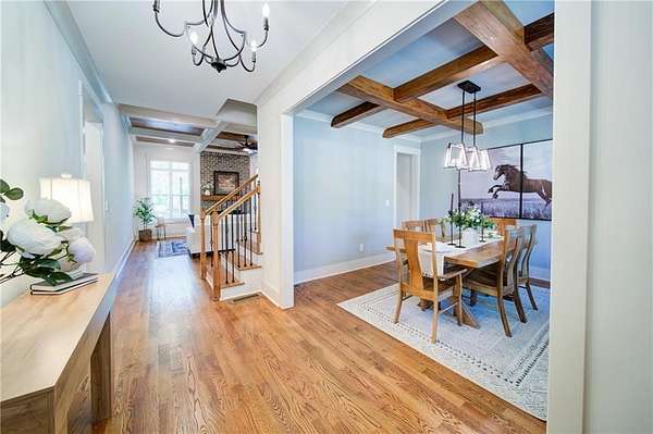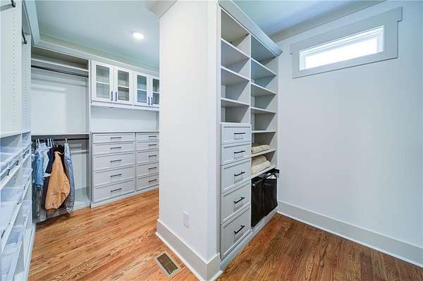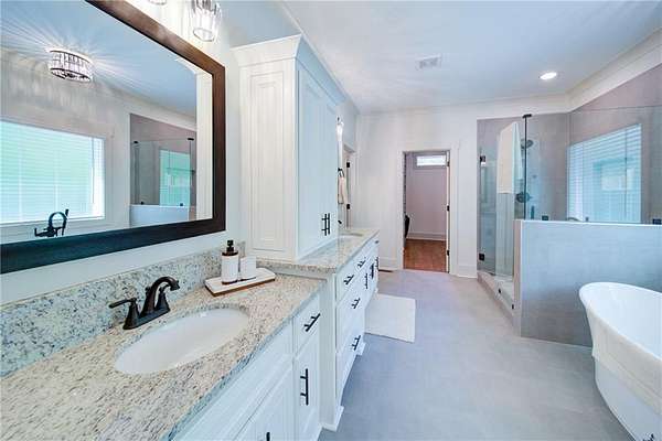 - Bookcases, Coffered Ceiling(s), Crown Molding, Disappearing Attic Stairs, Double Vanity, Entrance Foyer, High Ceilings 10 ft Main, High Ceilings 9 ft Lower, High Ceilings 9 ft Upper, Recessed Lighting, Tray Ceiling(s), Walk-In Closet(s)