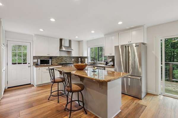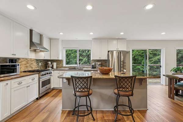 This spacious 4-bedroom, 2.5 bathroom home, fully renovated in 2020, is nestled in the serene surroundings of Boulder Creek. With a generous 2,224 sq ft of living space, this property offers ample room for comfortable living. The home features a formal dining room, perfect for family gatherings and entertaining guests, and a separate family room provides additional living space. The flooring throughout includes carpet and vinyl/linoleum, providing a mix of comfort and durability. The wood-burning stove creates a warm and inviting atmosphere, enhancing the home's charm while serving as a source of heat during cooler months. The property includes a two-car garage, providing convenient parking and additional storage. Situated on a large lot of almost 2 acres, this home provides plenty of outdoor space. Located within the San Lorenzo Valley Unified School District, this home is perfect for families seeking space and tranquility.