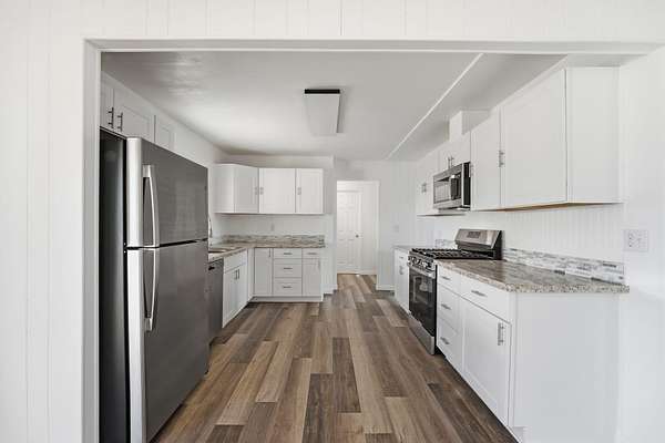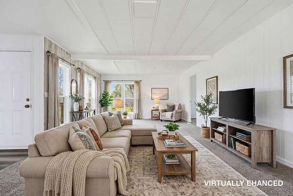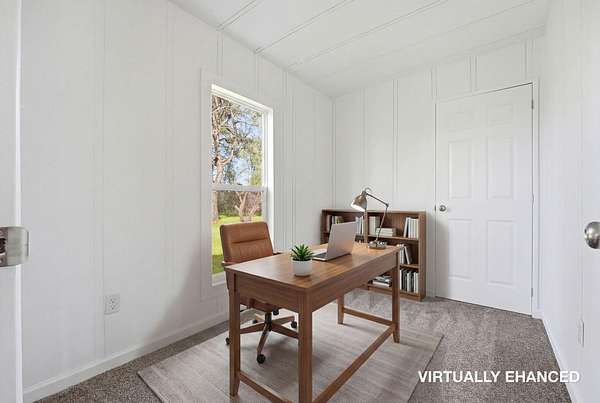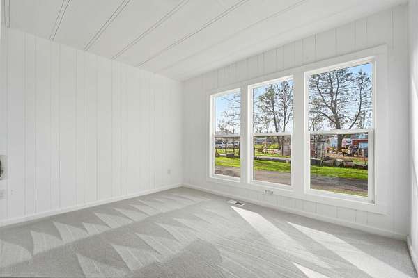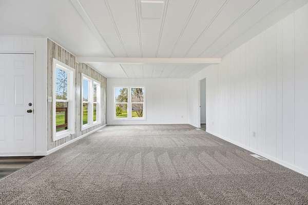 This beautifully remodeled country home features 3-bedrooms, 2-bathrooms, big living room, and an office. Large triple wide on a permanent foundation. The home has a brand new roof, brand new windows, new kitchen, new bathrooms, appliances, floors, paint, and more! Situated on just over 2 acres with an oversize, 2-car detached garage. The landscape features a variety of mature fruit trees, grape vines, beautiful rose bushes, and lots of room for animals and gardening. This one is a must see!