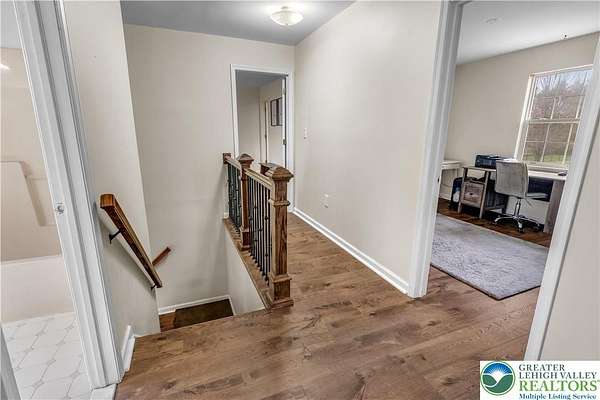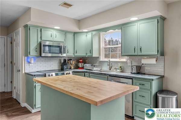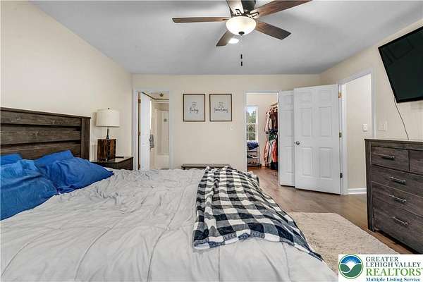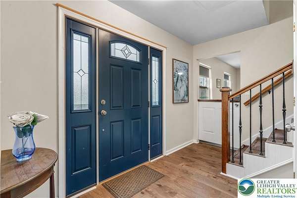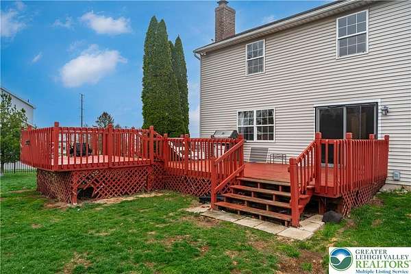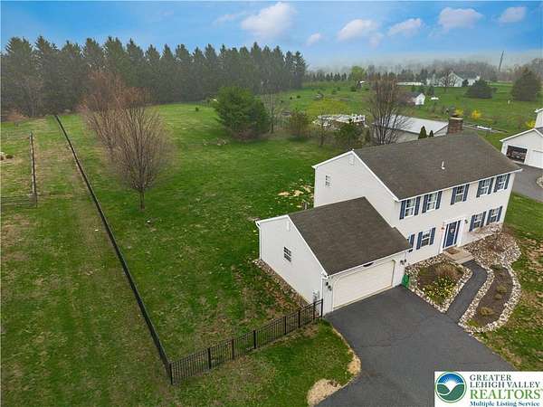 Welcome to 174 Cherry Hill Road, a charming Colonial-style home set on a generous 1.6-acre lot in the desirable Nazareth School District. This 4-bedroom, 2.5-bath residence offers a perfect blend of classic character and modern functionality. The first floor features beautiful hardwood flooring throughout, with a spacious dining room, cozy family room, and an inviting living room complete with a fireplace. The open-concept layout seamlessly connects the living area to the kitchen, showcasing sage green cabinetry, a center island, and stainless steel appliances-ideal for both everyday living and entertaining. A convenient first-floor laundry room adds to the home's practicality. Upstairs, the primary suite boasts a large walk-in closet and a private ensuite bathroom, while three additional bedrooms and a full bath provide ample space for family or guests. The unfinished basement offers endless potential for customization to suit your needs. A brand new water heater adds peace of mind and efficiency. Outside, enjoy a fully fenced yard, expansive deck, and the privacy of 1.6 acres-perfect for relaxing, entertaining, or outdoor activities. An attached garage completes this exceptional property!