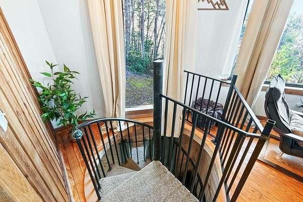 Mountain-Top Roundhouse Retreat on 2.3 Acres Discover a one-of-a-kind mountain sanctuary perched high above the treetops. This architecturally unique round home offers sweeping 360 views, unmatched privacy, and a peaceful connection to the surrounding natural landscape. Flooded with light and wrapped in panoramic windows, the open-concept design makes the outdoors feel like part of every room. Step inside to soaring ceilings, warm wood finishes, and a circular flow that creates both comfort and sophistication. The spacious main living area centers around the views, opening to a wraparound deck perfect for morning coffee, sunset watching, or stargazing at night. Set on 2.3 secluded acres, the property offers endless opportunities--gardens, outdoor entertaining, hiking paths, or simply relaxing in complete tranquility. Despite its private mountain-top setting, the home remains conveniently close to nearby towns, lakes, and outdoor recreation. Whether you're seeking a year-round residence, a peaceful retreat, or a standout short-term rental, this mountain-top round house is a rare gem combining design, nature, and serenity.
