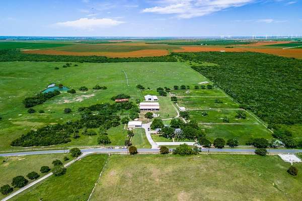 Immaculate single story on + - 5 acres in the country makes for a peaceful homestead! 3 bedrooms, 3 bathrooms, hard wood flooring, covered front and back patios, bonus room right off the back patio, large laundry room, walk in closets, whole home generator, huge oaks trees, large metal workshop with new pump in water well. Natural light abounds in the entryway and open concept living area. The kitchen features a farmhouse sink, gas cooktop, walk-in pantry, soft close drawers and cabinets with under cabinet lighting. A tranquil primary retreat offers an oversized shower, freestanding tub, separate vanities and large walk in closet. 2 secondary bedrooms provide space for guests including one with an impressive attached bath. The home was completely remodeled in 2012. AC unit is 5 years old. Enjoy walking to one of your many animal pens to care for your livestock or taking in a South Texas sunset on your porch. The metal workshop provides the perfect amount of space for new projects or existing projects. The possibilities are endless on this beautiful property. Seller is willing to consider selling the home with up to 20 acres if buyer would prefer more acreage.
