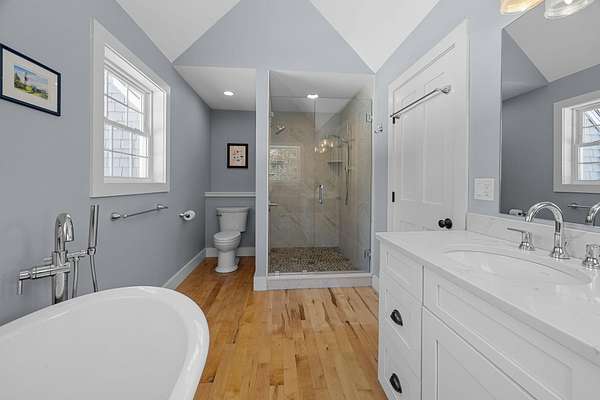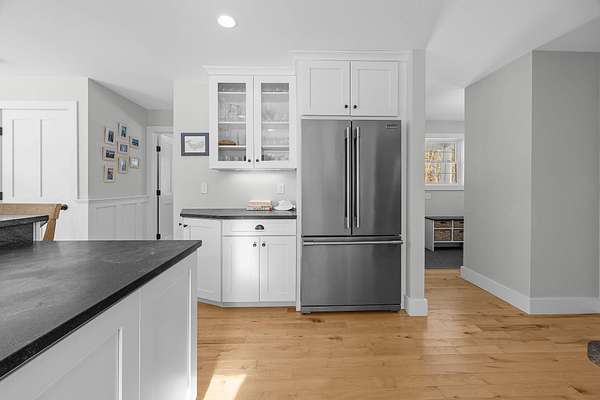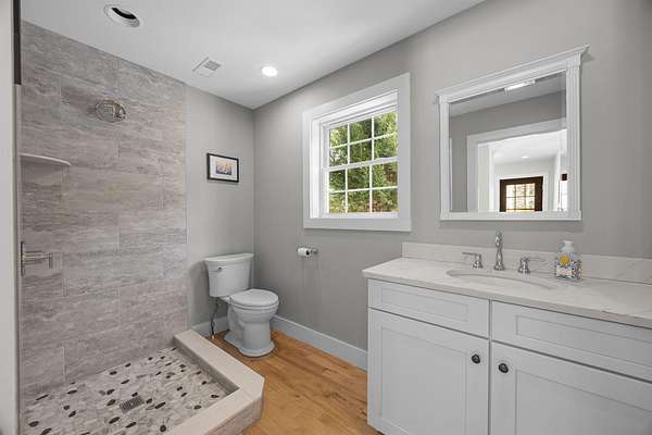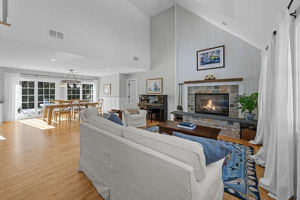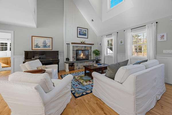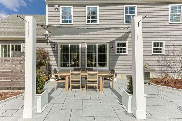 Escape to your private seaside retreat in the heart of East Marion. Tucked away on 4.5 acres just moments from Point Road and the newly renovated Little Marion Golf Course, this 2018 custom-built Cape offers a rare combination of privacy, modern comfort, and natural beauty. Set back approximately 300 feet from the road--strategically positioned to ensure privacy--a winding driveway leads to a sun-filled home surrounded by thoughtfully designed landscaping that blends seamlessly with the natural wooded setting. This 4-bedroom, 3-bath residence features a first-floor primary suite with cathedral ceilings, walk-in closet, and a spa-like bath with soaking tub, glass-enclosed shower, and dual vanities. The open-concept main living area showcases a vaulted great room with a raised-hearth stone fireplace, while the chef's kitchen is equipped with professional-grade appliances, honed granite countertops, and a separate pantry. Additional highlights include a first-floor office/library, first-floor laundry, maple hardwood flooring throughout, and a finished lower level offering a fitness room, TV room with wine bar, dedicated workshop, and abundant unfinished storage space. Energy-efficient features include solar panels, propane heating, on-demand hot water, and a standby generator. Outdoor living is equally impressive with a large granite patio and custom awning, as well as a cedar outdoor shower off the primary suite, and a 12x16 shed providing additional storage. Bonus features include a separately taxed 0.25-acre lot with building potential, an approved Conservation permit for a 3-car garage or ADU and a 40x60 barn. Ideally situated on a generous lot with a long, private approach, the home is thoughtfully positioned to maximize privacy while maintaining a desirable location. The layout and siting offer flexibility to expand over time or simply enjoy the property as it stands--tastefully designed and ready for effortless coastal living.