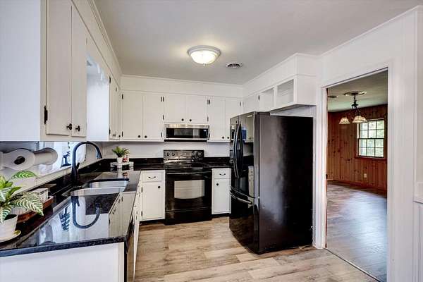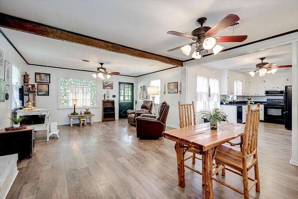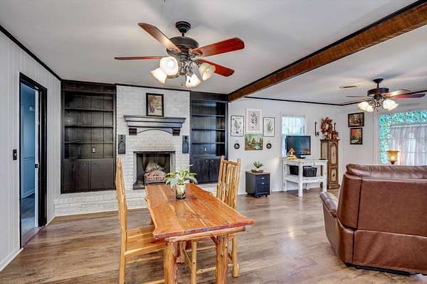SELLER MEANS BUSINESS!!! REDUCED 25K!! Discover this beautifully updated all-brick ranch home nestled on 3.19 serene acres, offering both comfort and functionality. A wrap-around and circular driveway lead to a double-car garage, a workshop with an additional double carport, and plenty of space for all your parking and storage needs. Relax on the covered back patio and enjoy the peaceful surroundings. Inside, you'll find a thoughtful layout featuring formal living and dining rooms, a welcoming family room with a stunning raised-hearth wood-burning fireplace flanked by built-in bookshelves, and a bright breakfast room. The kitchen boasts granite countertops and comes fully equipped with all appliances. The primary suite features a sitting area, office nook and walk-in closet. Recent updates include a newer HVAC system (2021) and an entirely new septic system (2020), ensuring peace of mind for years to come. This property combines timeless charm, modern upgrades, and ample outdoor space-perfect for those seeking a home with both character and convenience.