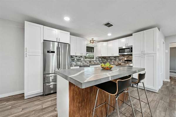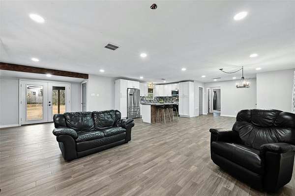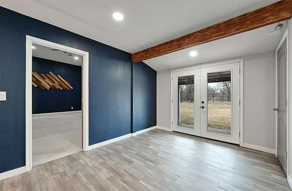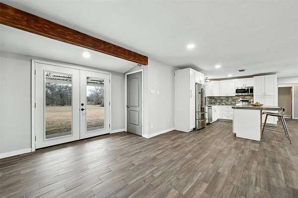 Beautiful 10 acres of grazing land with lush grasses and mature oak trees. One story home with primary suite addition - under roof, with a double walk-in shower, soaker tub, dual vanities and large walk-in closet with custom shelving. Enjoy preparing meals in this bright kitchen with white cabinets, stainless appliances, custom concrete counters and center island - remodeled in 2020. Open concept dining area, living room with in-wall electric fireplace and ceramic tile floors. The hall bathroom, two guest bedrooms and laundry utility room are across the living living area from the private primary suite. The refrigerator, washer and dryer can convey. Tax records indicate the original home may have been built as early as 1970 and a large addition made in 1995. The attached 2-car garage has a large storage room, perfect for workshop space. Bring your animals and hobbies, create your own lifestyle! Currently on a shared well - Aqua Water is available on Hershal Ln. This property is located between Austin and Bastrop. Just 28 miles to downtown Austin, 14 miles to the Austin Bergstrom Airport and 18 miles to Bastrop. Come take a tour of this amazing property before you miss it!