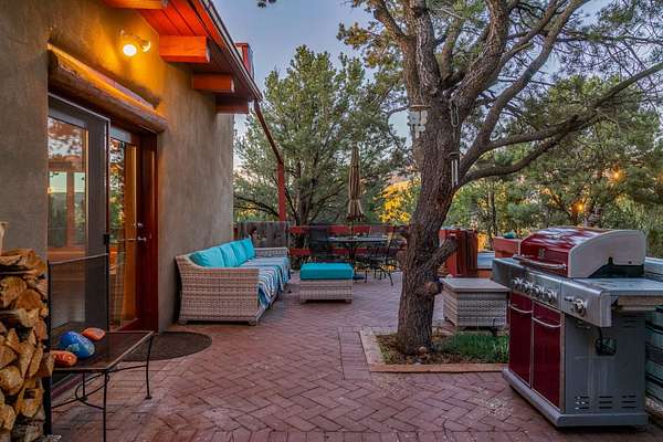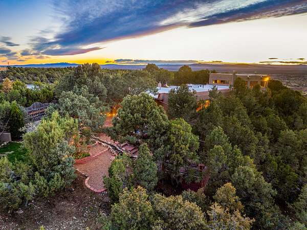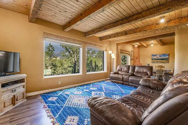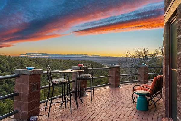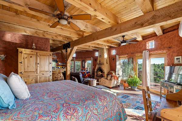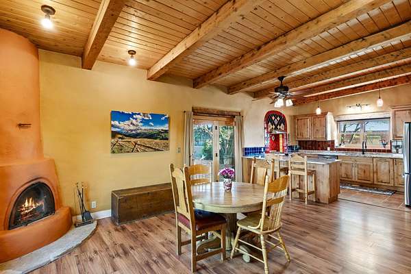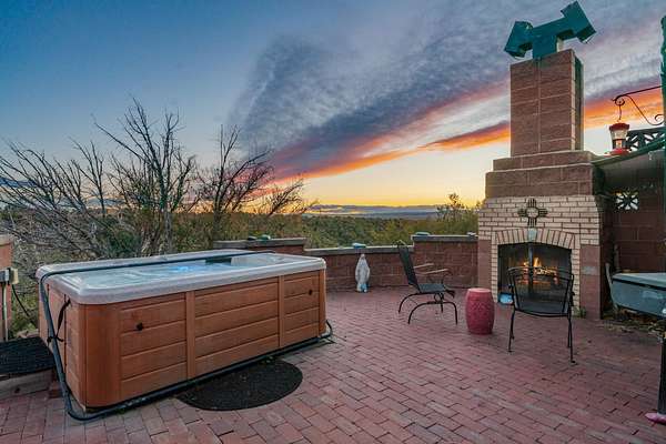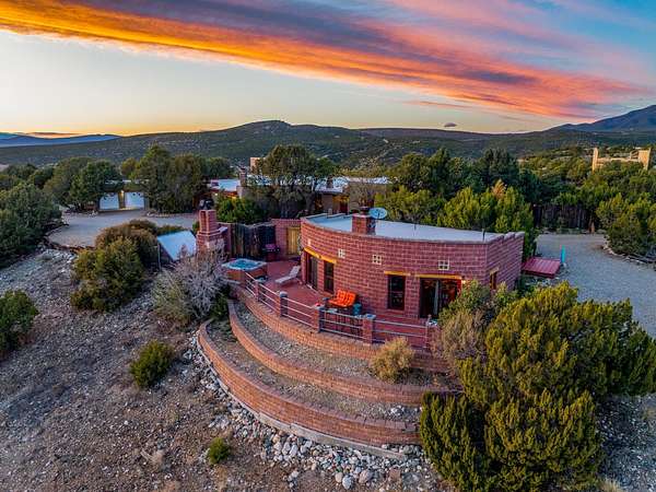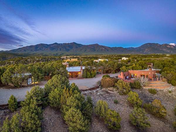 Perched on a breathtaking ridgetop in a highly sought-after area off Hondo Seco Road in Arroyo Hondo, this exceptional property captures sweeping, unobstructed views of the Sangre de Cristo Mountains and embodies the ultimate Taos lifestyle. Offering a combined total of 4,391 square feet of living space between the main residence and a detached casita, the property provides both scale and flexibility for refined living, guest accommodations, or creative use. Surrounded by natural beauty and privacy, yet just minutes from Taos Ski Valley, the Historic Taos Plaza, Taos Pueblo, and endless outdoor recreation, this is a rare opportunity in one of Northern New Mexico's most coveted settings. The main residence features 2 bedrooms and 2 bathrooms, blending authentic Southwestern character with comfortable, flexible living. Rich plaster walls, exposed wood beams, and a striking kiva fireplace create a warm and inviting atmosphere. Multiple living areas provide space to gather, unwind, and entertain, with seamless access to outdoor patios that enhance the indoor-outdoor flow. A standout feature is the dedicated entertainment lounge, designed for both relaxation and hosting. This inviting space features a custom bar, a lounge area, a fireplace, and space for recreation-ideal for game nights, movie nights, or casual entertaining. Adjacent to the game room is an additional flex space, perfectly suited for a home office, creative studio, fitness area, or overflow guest accommodations, along with a nearby guest bathroom for added convenience. The expansive second-story retreat is flooded with natural light and framed by panoramic mountain views. Currently used as a creative studio and lounge, this inspiring space offers incredible versatility-ideal for an art studio, yoga space, or additional guest quarters. The detached casita is equally compelling-full of charm, privacy, and its own unforgettable views. With a strong short-term rental history, it presents an excellent income-producing opportunity or a perfect guest retreat. Outdoor living is where this property truly shines. Expansive brick patios wrap around the home, offering multiple seating and entertaining areas designed to capture sunrise, sunset, and everything in between. Enjoy evenings under the stars in the private hot tub, gather around the outdoor kiva fireplace, or dine al fresco while taking in the sweeping high-desert landscape.