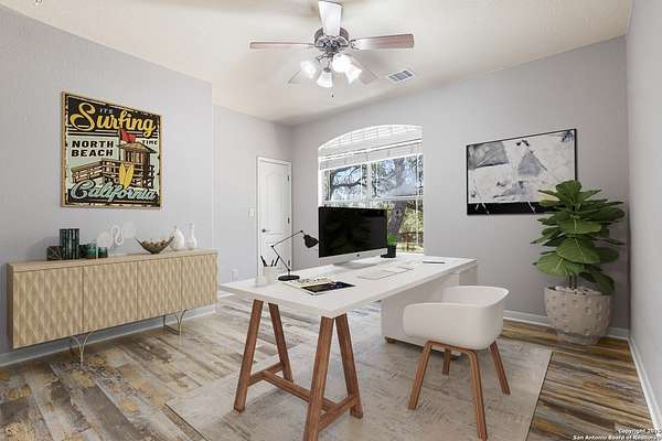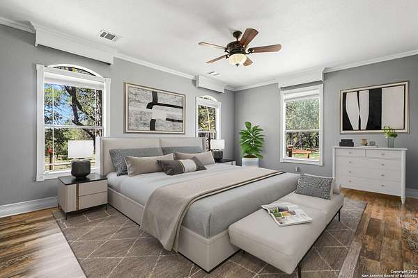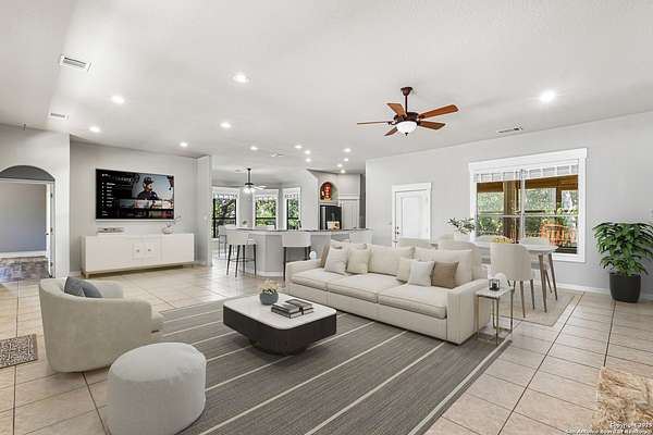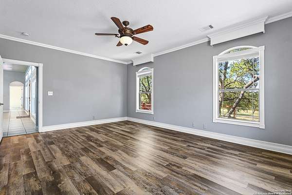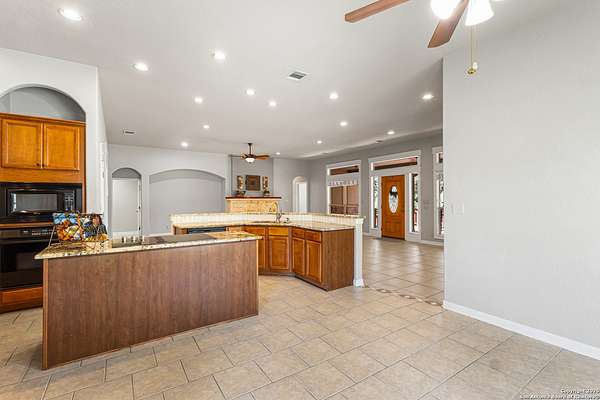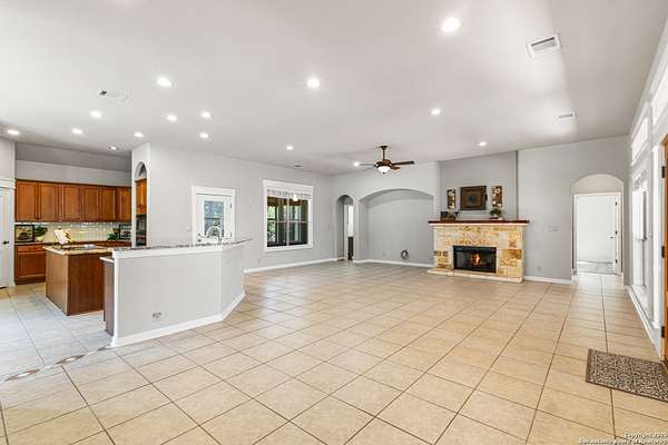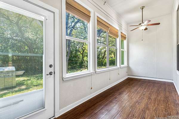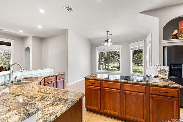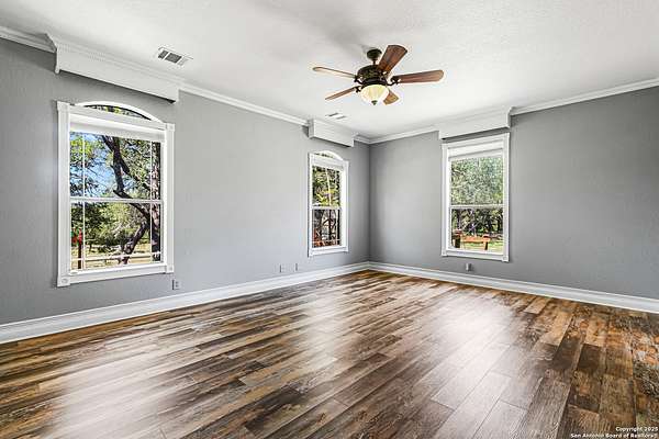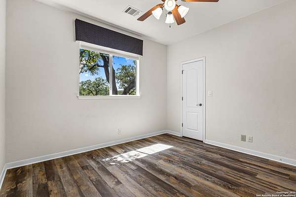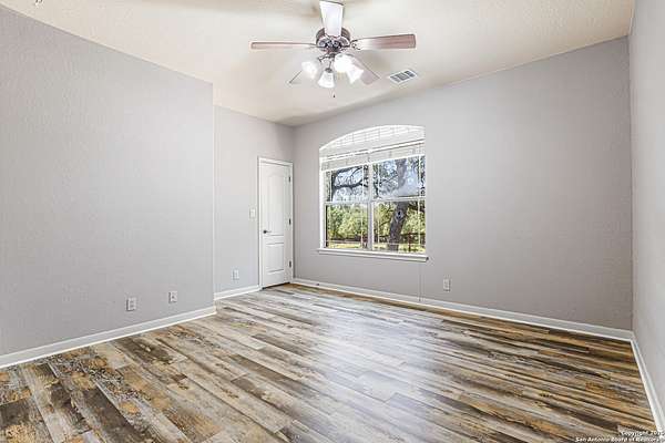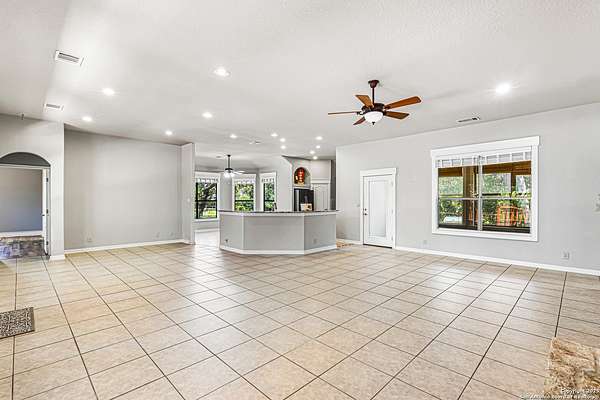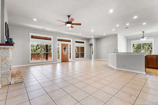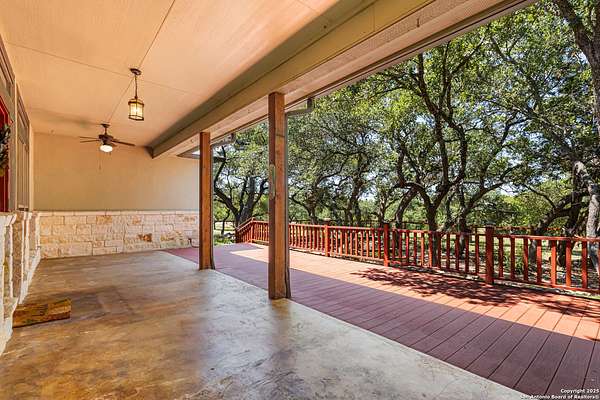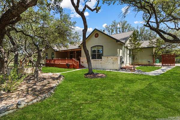 Looking for the Tranquil life? This home is located in a cul de sac towards the back of the neighborhood in the gated community of Lantana Ridge, Spring Branch TX. The views are jaw dropping! Appreciate the resort like feel. Must take the drive out to appreciate. TWO lots (26 &27) to total 5.33 acres. Open Floor plan offers great entertaining space - spacious kitchen overlooks 2 eating areas and oversized family room. Kitchen boasts - new cooktop, solid countertops, and custom cabinets with pullouts. Enjoy relaxing sunroom to view the great outdoors! Family room has attractive rock fireplace for those cooler Texas evenings. Privacy to master suite with a split floorplan as two additional bedrooms are located on opposite end of the home. Plenty of storage through out the entire home and ample closet space too. Welcoming and Spacious formal and casual eating areas and extra seating at the kitchen bar. Fenced backyard and garden area, two storage sheds and plenty of Texas size acreage to roam! Tile and luxury vinyl plank flooring - no carpet. Peace and serenity abound from the moment you proceed to the winding private driveway leading to oversized side entry garage. Easy access to highways, modern conveniences 10 minutes - restaurants, shopping and medical. Quick highway driving means 20-25 minutes in to San Antonio. Roof 2017, Septic serviced 2025. Time to own some land in Texas and a one story home!