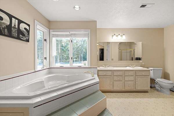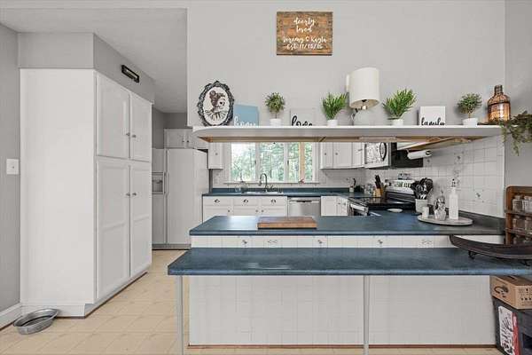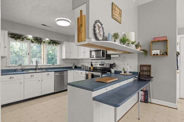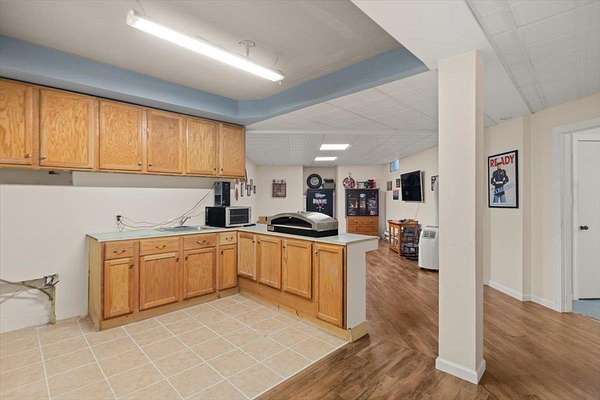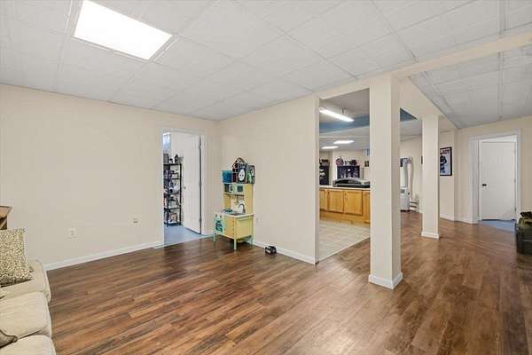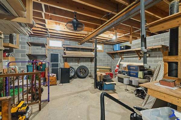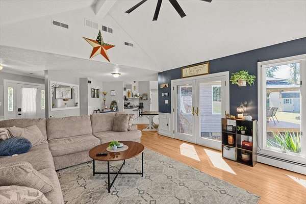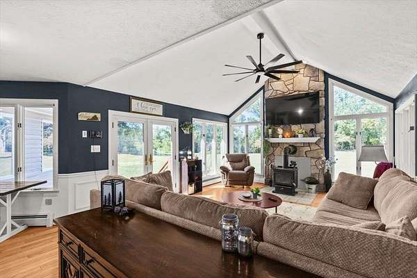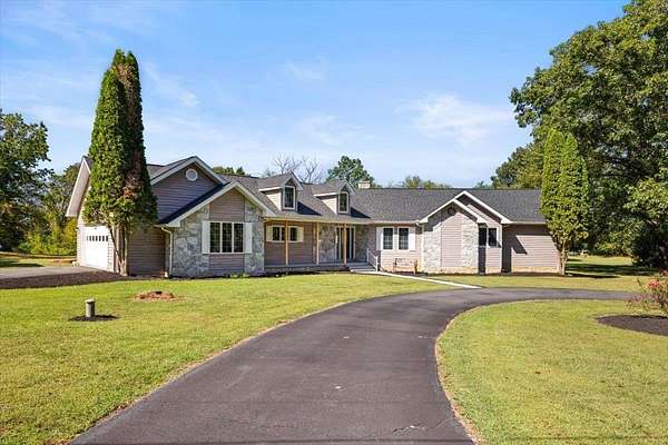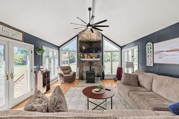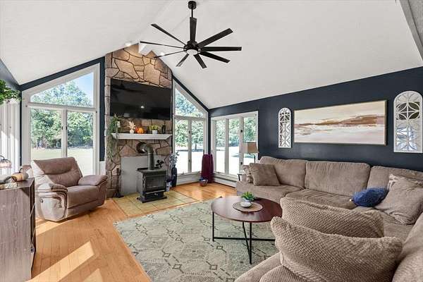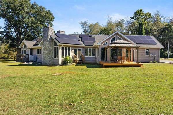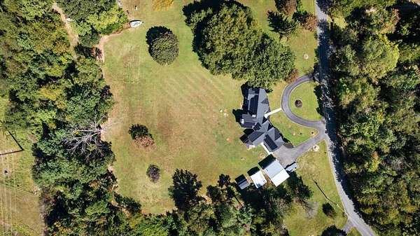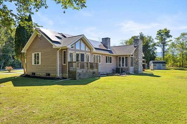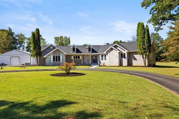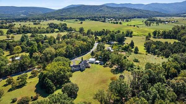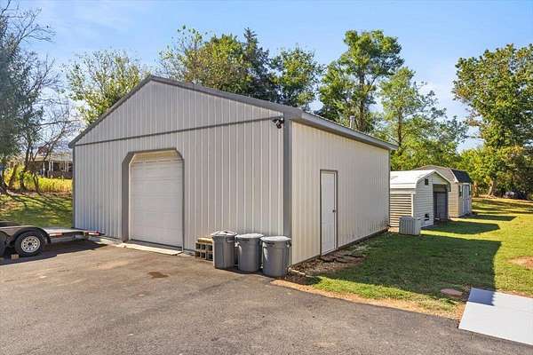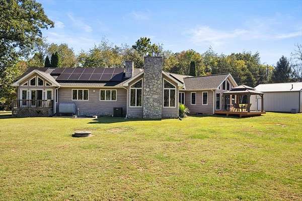 Welcome to 174 Martin St., just minutes from downtown Luray and only 7 miles from Skyline Drive. This contemporary home offers over 3,300 sq. ft. of living space on 2.44 acres, blending small-town charm with Shenandoah Valley adventures. A circular driveway, landscaped yard, and inviting front porch set the tone. Inside, the grand living room boasts floor-to-ceiling windows, vaulted ceilings, and a stone woodstove. The dining room features new windows and sliders opening to a pavilion-covered deck overlooking the large, level backyard. The bright kitchen offers white cabinetry and a walk-in pantry. Down the hall are two bedrooms, a full bath, and a spacious primary suite with whirlpool tub, separate shower, and dual sinks. The finished basement adds a full bath, kitchenette, laundry, and flexible spaces for entertaining, fitness, or play. Ample storage includes an attached 2-car garage, detached 2-car garage, and workshop. Peace of mind comes with recent updates--HVAC (2024), roof and solar (2022). This property truly has it all!