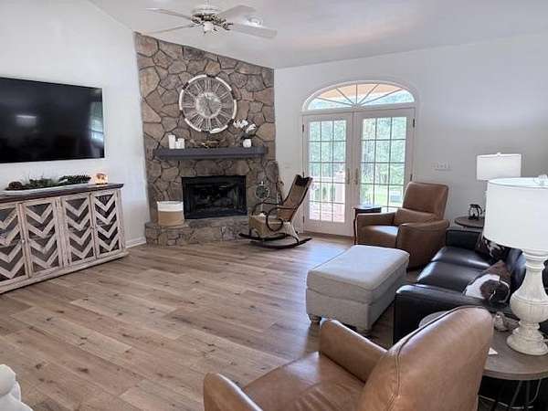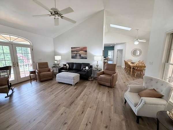 Beautiful Mountain Retreat in Coosa Walk – Blairsville, GA 174 Oak Lane | 4 Bedrooms | 3 Full Baths | 2.18 Acres Nestled in the peaceful and desirable Coosa Walk community, this stunning home offers the perfect blend of comfort, space, and natural beauty on 2.18 acres of meticulously landscaped property. Step inside to find wide plank LVP flooring throughout and a thoughtfully designed layout featuring a spacious great room with fireplace, a formal dining area, and a large kitchen ideal for entertaining. Elegant arched French doors add charm and character, bringing in natural light and creating a seamless flow between living spaces. The primary suite is a true retreat, complete with a luxurious ensuite bath featuring a soaking tub, double vanity, private water closet, and a generous walk-in closet. Finished basement includes full bath, storage and closet space making this an excellent option for mother-in-law suite multigeneraltional living or entertainment room. Outdoors, enjoy your own private oasis with a beautiful patio and rock fireplace, perfect for relaxing evenings or hosting guests. The property boasts mature landscaping with an abundance of plantings including: Peach & apple trees; Blueberry bushes & Grapevines; Hydrangeas, Azaleas, and Iris bulbs. Additional features include large 2 car attached garage plus an extra detached garage/storage building and even more storage with an additionalnal out building, offering plenty of room for vehicles, tools, or hobbies. Located in a quiet, peaceful neighborhood, this home offers the tranquility of mountain living while still being convenient to everything Blairsville has to offer. A rare opportunity to own a beautifully maintained home with acreage, charm, and exceptional outdoor living—bring your gardening gloves and your rocking chairs!