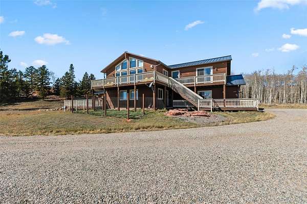 Experience complete privacy and serenity at this stunning mountain estate on eight wooded acres in the exclusive Silverheels Ranch subdivision. This home blends luxury and livability with an open-concept design centered around a gourmet kitchen featuring an induction range and vaulted ceilings that offer expansive views to the south. The large upper deck invites outdoor living—perfect for entertaining, wildlife viewing, or stargazing under Colorado skies. Enjoy the convenience of cable internet for remote work and a large garage ideal for vehicles and your mountain gear. Step outside to explore forested trails, cast a line in the nearby fishing pond, or ride horses straight from the neighborhood. Recent upgrades include a remodel with new kitchen, flooring, and paint, plus energy-efficiency enhancements, new roof and gutters, septic system, well pump, boiler, water heater, and solar / emergency generator. This home has had the full overhaul and is move in ready. With 4 bedrooms, 4 bathrooms (including steam shower), and a vaulted bonus room perfect for a family room, office, or game area, this property offers the ideal balance of mountain luxury, privacy, and practicality. Looking for more storage? There is ample scope to build a barn to compliment your mountain lifestyle. Seller will consider financing.