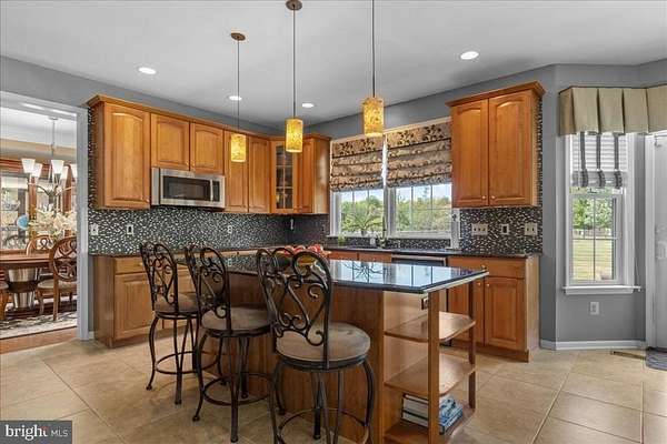 Set on 7.75 private acres, this stunning estate offers timeless style, modern comfort, and an exceptional in-law suite. A tree-lined driveway leads to the residence with 9' ceilings on the first floor, a two-story foyer with double tray ceiling and ceramic tile, and a 3-car garage with epoxy floors. Outdoor spaces include a fenced yard, concrete patio, pond and expansive grounds for recreation and relaxation. The gourmet kitchen boasts granite countertops, stainless steel appliances, tile backsplash, pendant lighting, ceramic flooring, and a spacious pantry, flowing seamlessly into the 2 story family room, floor-to-ceiling stone fireplace with pellet stove, and a wall of windows. A formal dining room with hardwood floors and tray ceiling, living room with hardwood floors and shadow boxes, a private office with hardwood floors and French doors, and a mudroom with wainscoting complete the main level. Upstairs, the primary suite is a retreat with vaulted ceiling, sitting room, walk-in closet, and bath featuring dual sinks, jetted tub, and shower stall. Additional bedrooms each offer walk-in closets and ceiling fans, while a versatile loft and second-floor laundry provide convenience. The walk-out lower level features 9' ceilings, waterproof engineered flooring, recessed lighting, workout, game/computer rooms, workshop and direct access to the in-law suite. The in-law suite includes two bedrooms, 1.5 baths, its own granite kitchen with stainless steel appliances, hardwood living and dining rooms, a sunroom with French doors and patio access, plus private laundry and a craft room. Notable upgrades include 400-amp service (dual 200-amp panels), dual oil tanks, two electric meters, 2-zone HVAC with an additional zone for the in-law suite, and a diesel/oil whole-house generator powering the main home, in-law suite, and pole barn. The main AC was replaced in 2023. A 48x36 pole barn with 15' door, concrete floor, insulation, pellet stove, water, 100-amp electric, ceiling fan, and patio provides endless options for storage, workspace, or hobbies. This one-of-a-kind property blends privacy, luxury, and versatilityall just minutes from shopping, dining, and major roadways.