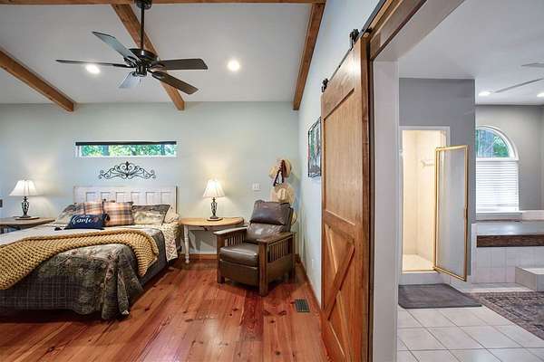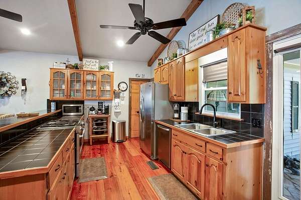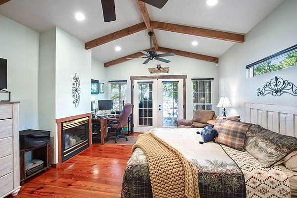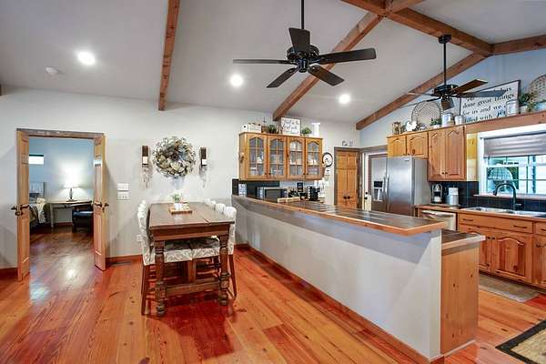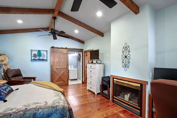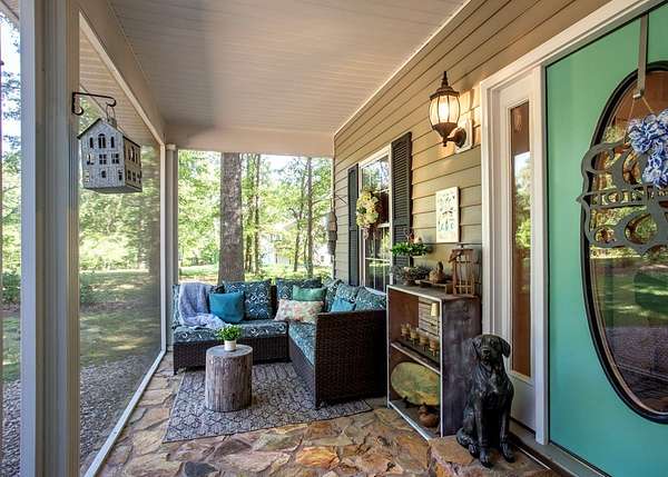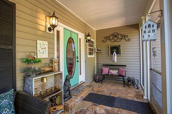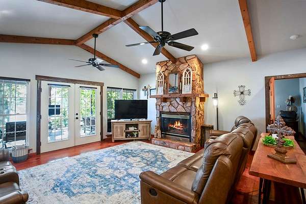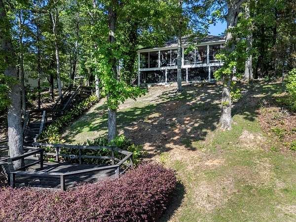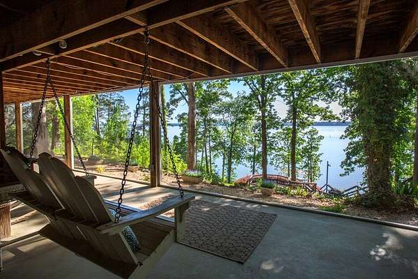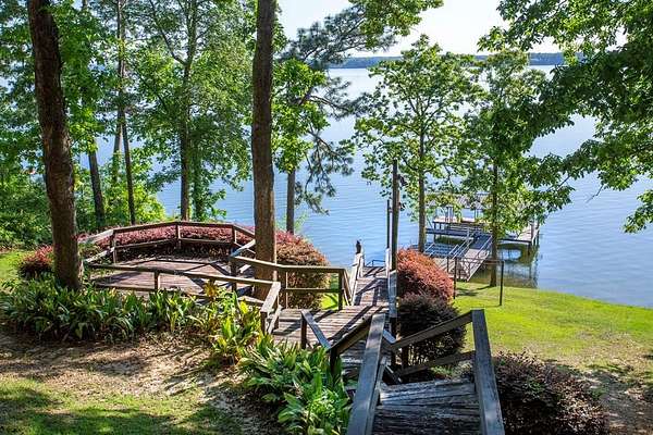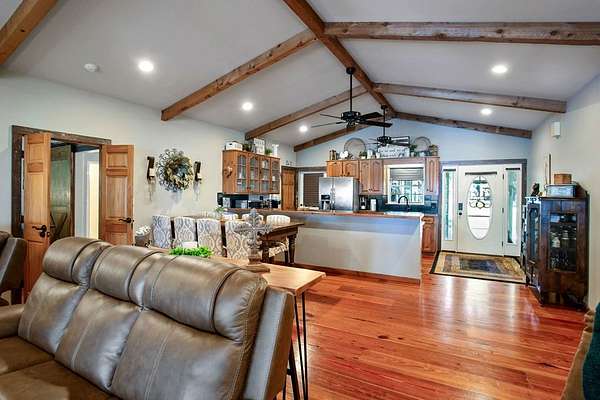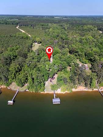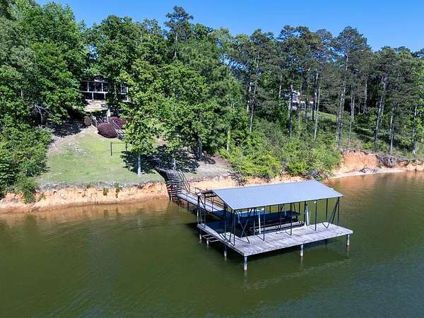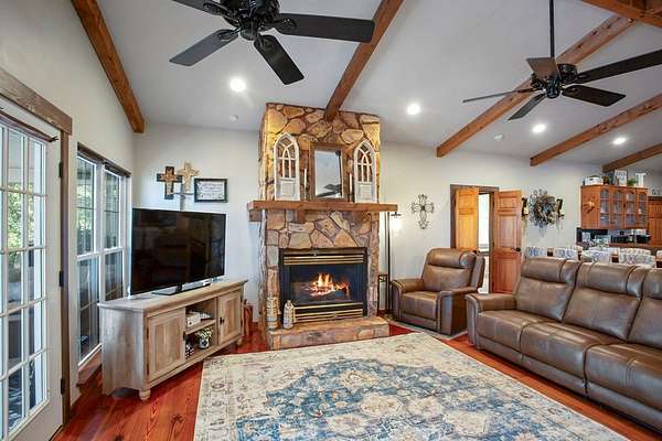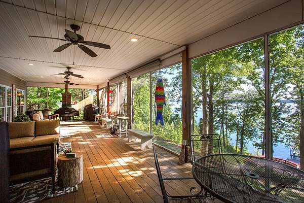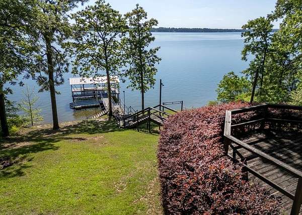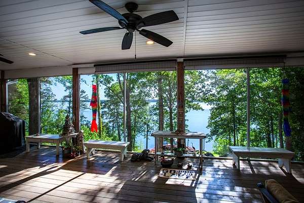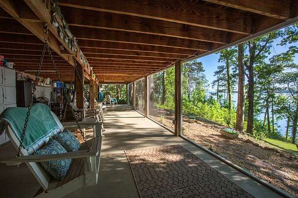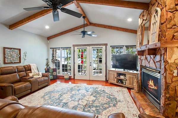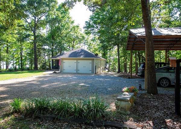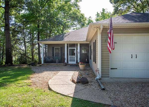 Stunning main water views and effortless lake living define this beautifully maintained waterfront home on over one acre of shaded property. This 3-bedroom, 2.5-bath home offers comfort, privacy, and functionality throughout. Interior features include hardwood floors, wood-accented ceiling beams, and a cozy gas fireplace. The spacious master suite provides a relaxing retreat with a large bath. Enjoy outdoor living with a screened front porch and upper and lower screened back porches overlooking the water. A lighted walkway with resting areas leads to the private dock, approximately 5 years old, featuring electricity, water, LED lighting, a boat lift, and a double jet ski pad. Recent updates include a new roof (11/4/2021), fiber optic internet, security system, new screen doors, and a JennAir gas stove. Energy-efficient features include a heat pump with retention tank connected to the water heater. Propane gas lines are installed on both back porches for easy grilling. Additional highlights include water access with faucets to the end of the driveway, a 24x24 pole barn (11/17/2021), moisture barrier in crawl space, and a 2-car garage with half bath. A long gravel driveway adds privacy. Perfect for full-time living or a lakefront getaway.
