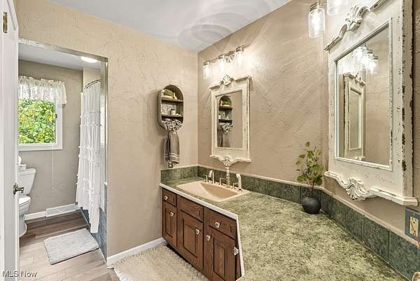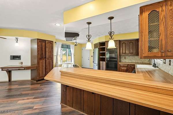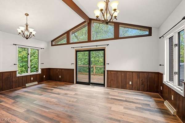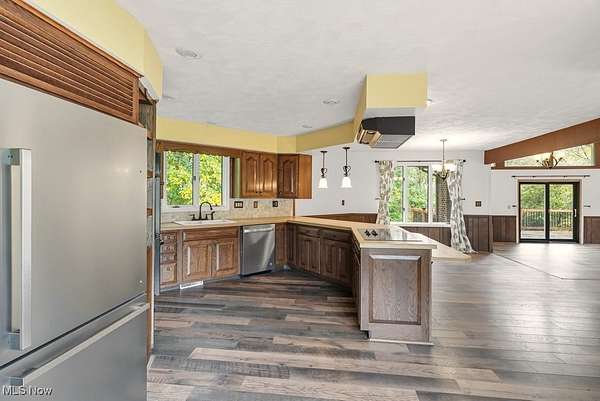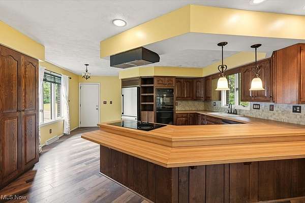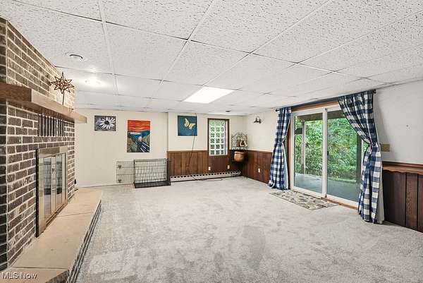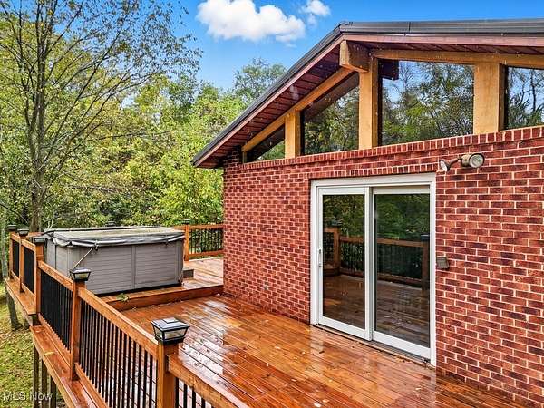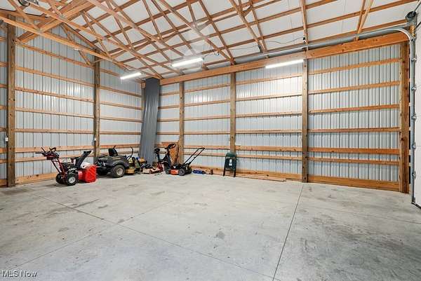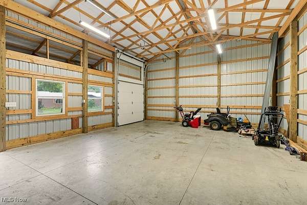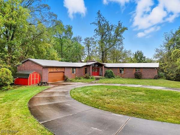 This sprawling, open-concept ranch offers the perfect blend of privacy, comfort, and versatility. Nestled among mature trees on over 2 acres, this beautifully maintained home is a rare find for those who crave space-both inside and out. Step inside to a seamless open floor plan filled with natural light, ideal for both entertaining and everyday living. The heart of the home features a spacious kitchen with bar seating, dining, and the living area that flow effortlessly together, creating a warm and inviting atmosphere. The living room offers access to the deck (2023) and a lovely floor-to-ceiling brick fireplace. Off of the kitchen is a second powder room and garage access. The main level is completed by a spacious Primary Suite with ensuite powder room, WIC and private access to the deck, a full bath with a dressing table, two more generously-sized bedrooms, a laundry closet in the main hall, and an open foyer with stairs to the lower level. Downstairs, the fully finished walkout basement expands your living space with a generous recreation room, a stylish bar area, a second full bath, a storage/utility room, and a bonus room perfect for a home gym, office, or guest suite. An additional room in the basement provides space for a workshop and stairs leading to the attached 2-car garage. Outside, enjoy your own private oasis. Relax on the deck, in the hot tub, or around the cozy fire pit-inviting you to unwind under the stars. A massive new outbuilding/RV/boat garage (2024) provides endless possibilities-whether you're a car enthusiast, need extra storage, or want space for your next big project. The large circular driveway offers convenience and impressive curb appeal. Many recent updates including a brand new metal roof (2025), new AC (2024), a new well pump (2025), and more! This property truly has it all: space, functionality, and the peace of a wooded, country setting-yet still just a short drive to all the essentials, including downtown Wooster.