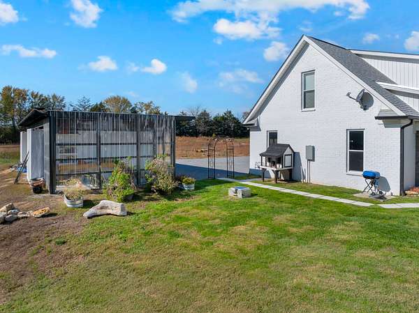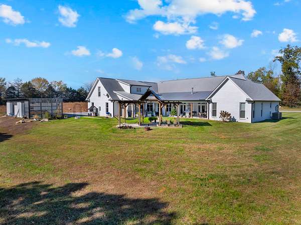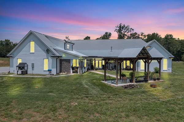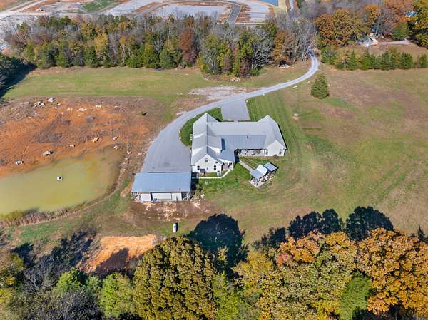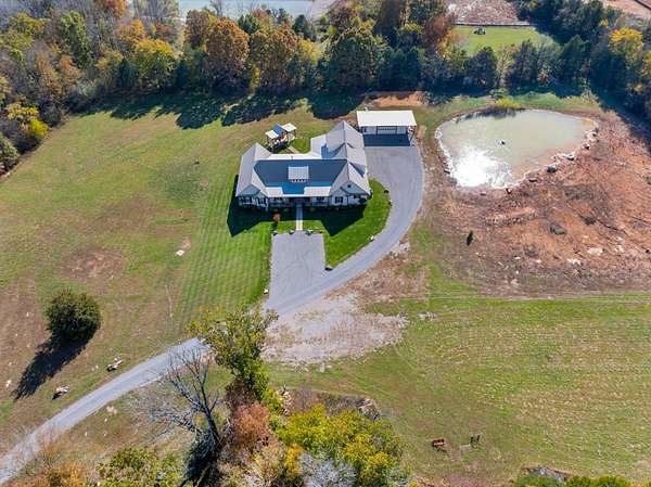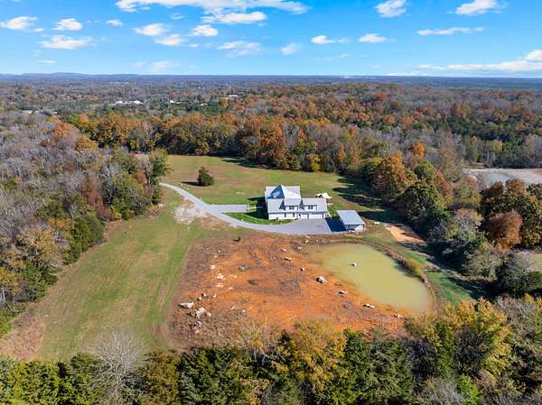 Welcome to this stunning 2021-4BR/4.5BA custom built home on 15 private acres with a pond--just 2 minutes from I-65 & 30 minutes from Franklin! This nearly-new masterpiece offers luxury living with thoughtful design & top-tier finishes throughout.Step inside to soaring vaulted ceilings in the living room and primary suite. The gourmet kitchen impresses with quartz countertops, an oversized 10'+ center island, upgraded lower cabinets with slide-out storage, and a hidden 11x14 butler's pantry for added prep and storage space. Each bedroom features its own private bath, while the spacious owner's suite boasts a walk-through tile shower, separate soaking tub, and dual vanities.Enjoy the convenience of a half bath for guests, custom closet shelving, and a beautifully designed laundry room with tile backsplash and built-in drying racks. Outdoor living is unmatched with over 1,100 sq ft of covered space, a gas hookup for grilling, a 10x24 pavilion, greenhouse, a container shop wired with electric, and an irrigation system, driveway freshly tar'd and chipped.The oversized 3-car garage adds ample storage, and HIGH-SPEED internet keeps you connected while enjoying the peace of country living. With every detail carefully considered, this home truly has it all--style, space, and serenity.Your dream property awaits! Feel free to call with any questions.