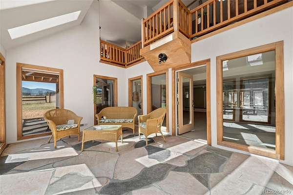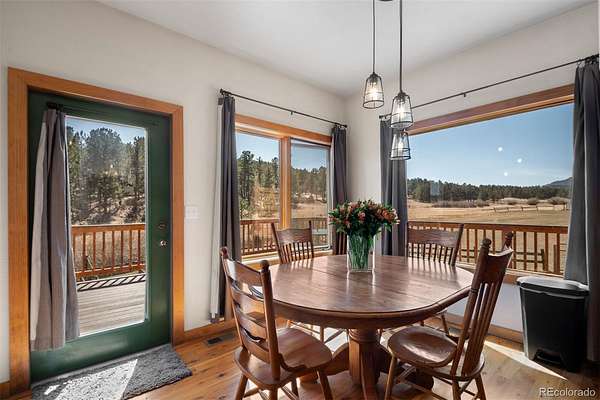 Welcome to 1740 County Road 72, a mountain contemporary home on 5+ gently-sloping, fully fenced, acres in Burland Meadows, Bailey, 80421. The 4-bedroom, 3-bath house offers 3,110 sq ft of light-filled space with snowcap views and seamless indoor-outdoor living. Enjoy a luxurious main-floor primary suite, a spacious open-concept kitchen perfect for entertaining. Large windows frame the stunning outdoor beauty. The open lower-level walkout offers a sunroom as well as the 4th bedroom and 3rd bath.