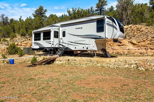 Est $1,894/moUnbelievable opportunity to own acreage in the White Mountains which has all the amenities to start living your best mountain life now! This 5 acre parcel features breath-taking views, 2022 Jayco Eagle 5th wheel, 600 gallons of water with tanks and pump, power installed, ready-to-build flat pad, storage shed, and septic tank installed. Allows for Manufactured homes, horses and plenty of room for all the toys. No HOA. So many possibilities so come take a look today!