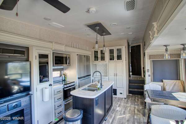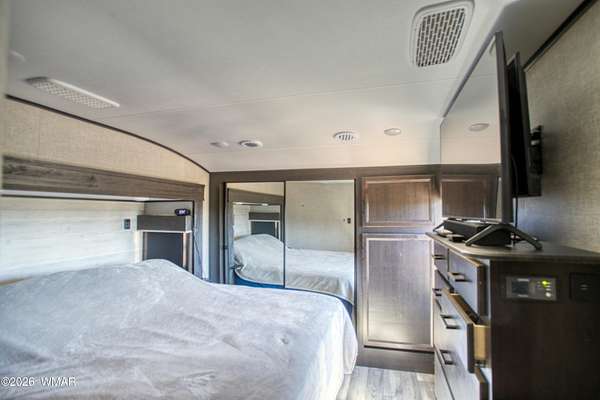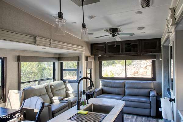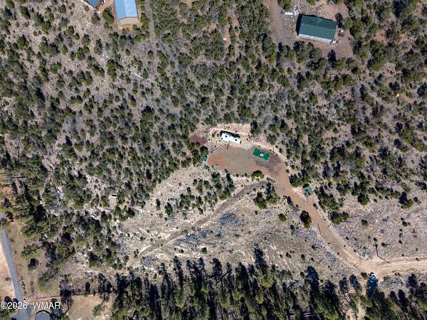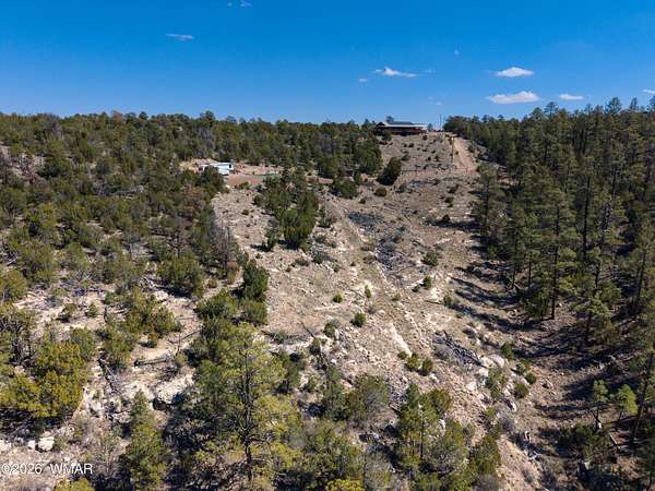 Unbelievable opportunity to own a 5-acre ridge-top parcel in Heber, AZ, offering panoramic canyon views and a fully turn-key setup in the heart of the White Mountains. This property sits atop a scenic ridgeline with a large, level building pad already in place, plus power, septic, and 700 gallons of total water storage (500-gallon buried tank + 200-gallon auxiliary tank). A second flat area at the bottom of the parcel provides additional space for a guest home, rental unit, or future build. No HOA and plenty of room for Multiple homes, horses, RVs, and all your mountain toys. Included in the sale is a 2022 Jayco Eagle 321RSTS fifth wheel, used fewer than 10 times and in excellent condition. Features include triple slide-outs, Climate Shield" zero-degree tested insulation, residential-style kitchen with 21 cu. ft. refrigerator, 4K Ultra HD Smart TV, fireplace, queen bedroom suite, and fully enclosed/heated underbelly--ideal for year-round mountain living. Fifth wheel sits on the main building pad and creates an immediate, comfortable living option. Property also includes a storage shed with tools, water tanks with pump, and easy access from the Highway. Located in Heber, known for its cool summers, four seasons, and proximity to national forest, lakes, and outdoor recreation. This is a rare chance to secure improved acreage with utilities, views, and a ready-to-enjoy setup. So many possibilities--vacation retreat, full-time residence, or income-producing rental. Come see this exceptional White Mountain property today.