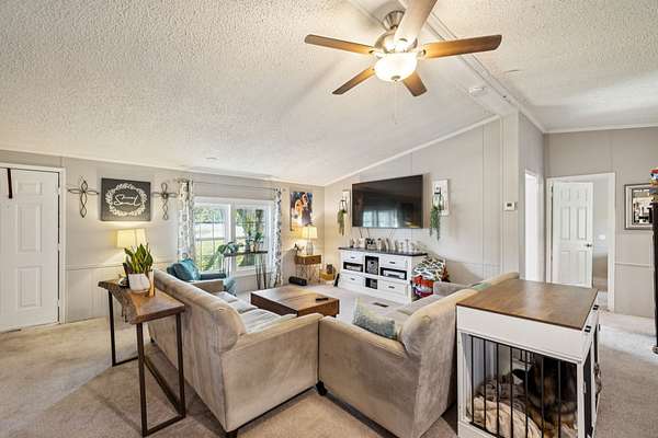 Est $1,972/moManufactured home on a permanent foundation~POTENTIAL 3 Bedrooms~Level lot with a huge open front yard with a perfect number of shade trees~open floorplan~split bedroom design~formal dining room~large living room with gas fireplace~kitchen with plenty of counter space~newer carpets~walk-in closets including 2 in the master suite~all kitchen appliances remain~HVAC 2021~Covered back deck perfect for the morning coffee or afternoon tea~detached workshop~conveniently located with a straight drive to Clarksville or Nashville~ 50 amp service for RV on site