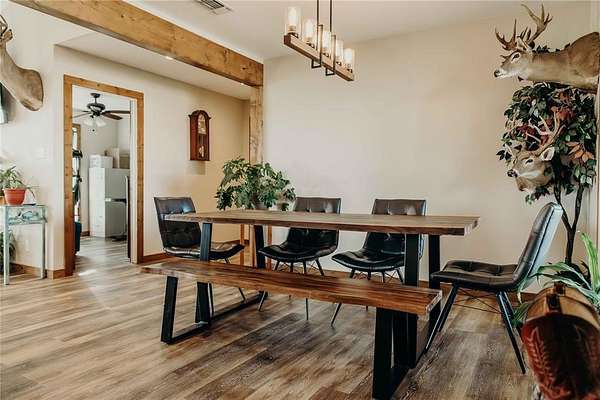 Discover the perfect blend of comfort and country living with this beautifully maintained 3-bedroom, 2-bath home set on nearly 20 acres of ag-exempt land. Featuring an open floor plan, this stucco residence includes a cozy wood-burning stove, perfect for relaxing evenings. The spacious layout is ideal for both family living and entertaining.