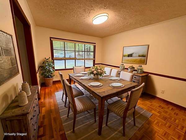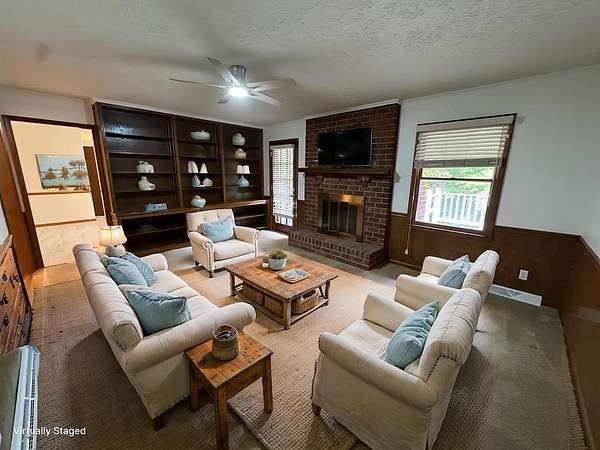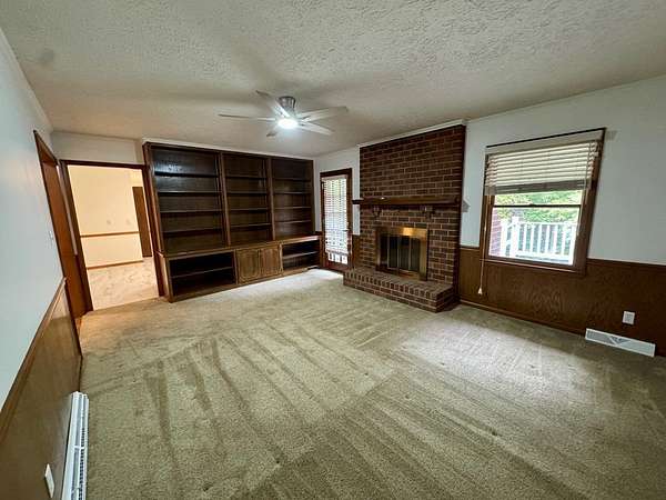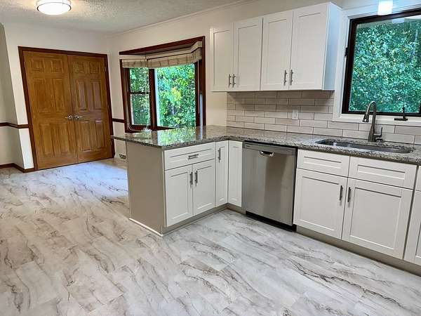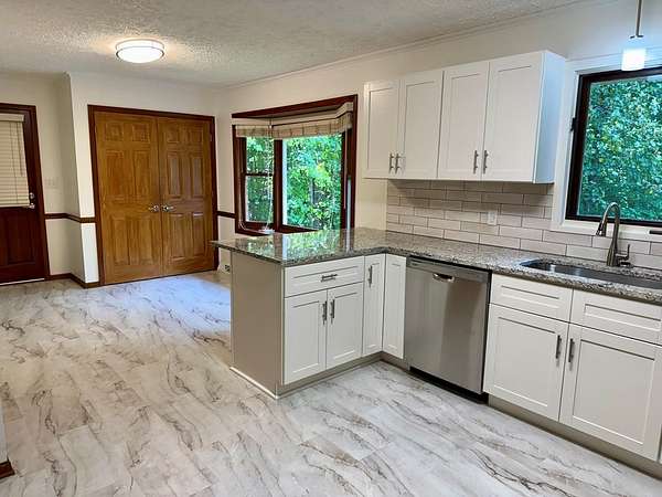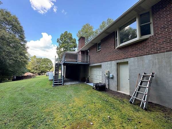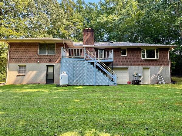 As soon as you pull into the circular driveway it becomes clear that this well built home has a lot to offer. Sitting on 5+ mostly wooded acres with a creek running through the property. This three bedroom, three bath home has over 2600 square feet of living space including a large newly remodeled eat-in kitchen with new appliances. The living room has a brick fireplace and built-ins. The main level has a laundry and all bedrooms including a large primary with walk in closet and ensuite. Downstairs you will find a large family room with gas log fireplace, full bath and wet bar. In addition to the garage on the main level it also has a large workshop in the basement that would be great for wood working or as an extra garage. Prewired for a generator. New roof, lighting and landscaping.