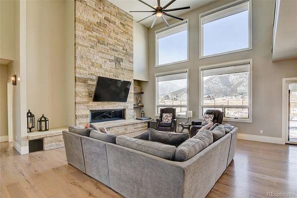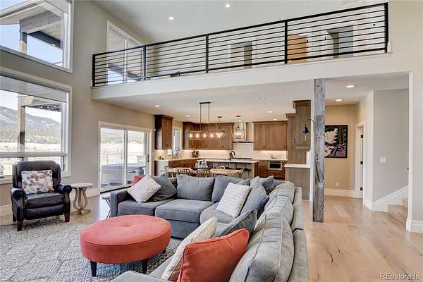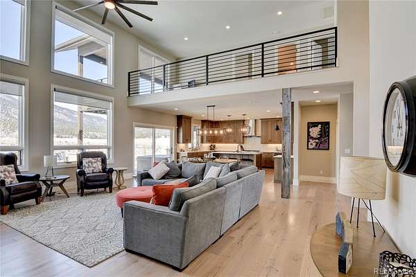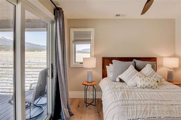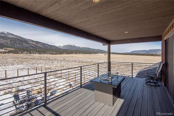 This 4-bedroom contemporary home with Farmhouse elements features views from every window, the back patio and second story deck of the surrounding Collegiate Peaks mountain range, the rugged Upper Arkansas River Valley, and serenity of the nearby pastures. Move-in ready; enjoy the many amenities of The Reserve and the outdoor activities of the area. This modern home includes a blend of colors and textures that a discriminating buyer would choose - natural, relaxing, barn-wood accents, stone, wood, creative use of glass and black matte hardware accents. Main floor living with Primary Suite, guest room with ensuite bath, and the great room with 18-foot ceilings, a Linear Premium fireplace by Xtrordinair, and wall of windows facing Mts. Princeton, Yale, and Columbia. The gourmet kitchen has JennAir appliances, including a six-burner gas stove top and Armoire style refrigerator, custom white oak cabinetry with many built-in features, and Caesar stone quartz counters. The adjacent laundry and mud room has Stevens Wood cabinetry with plenty of storage. The oversized three-car garage is finished and insulated. Enjoy the amenities of mountain living in The Reserve - 4 catch and release trout ponds, miles of trails around perimeter and along Cottonwood Creek, 32 acres of greenspace along the Creek, and a pavilion with fireplace and large BBQ that seats 50 - just over 3 miles from Buena Vista's Main Street, and centrally located to take advantage of the area's hiking, biking, kayaking venues. Ski Cooper and Monarch Mountain are but a 45-minute drive. The home is ideal for year-round living or for a second home, having Nest technology for remote control of heating and lights. Furniture/furnishings are included as is the HotSpring hot tub, backyard furniture and firepit on upper deck.